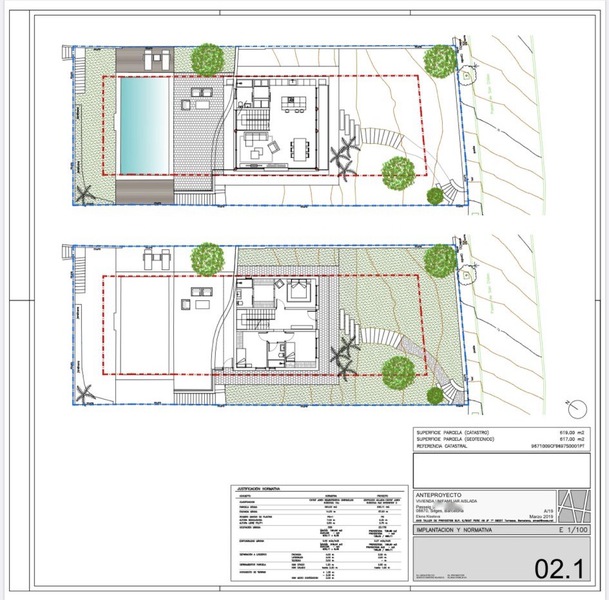 Excelente terreno en venta en una de las mejores calles de Vallpineda en Sitges, Carrer Sant Didac. Actualmente hay una edificación en forma de piscina y pool- house cosa que se puede (o no) derrumbar y construir una casa nueva de a próximamente 200m2.