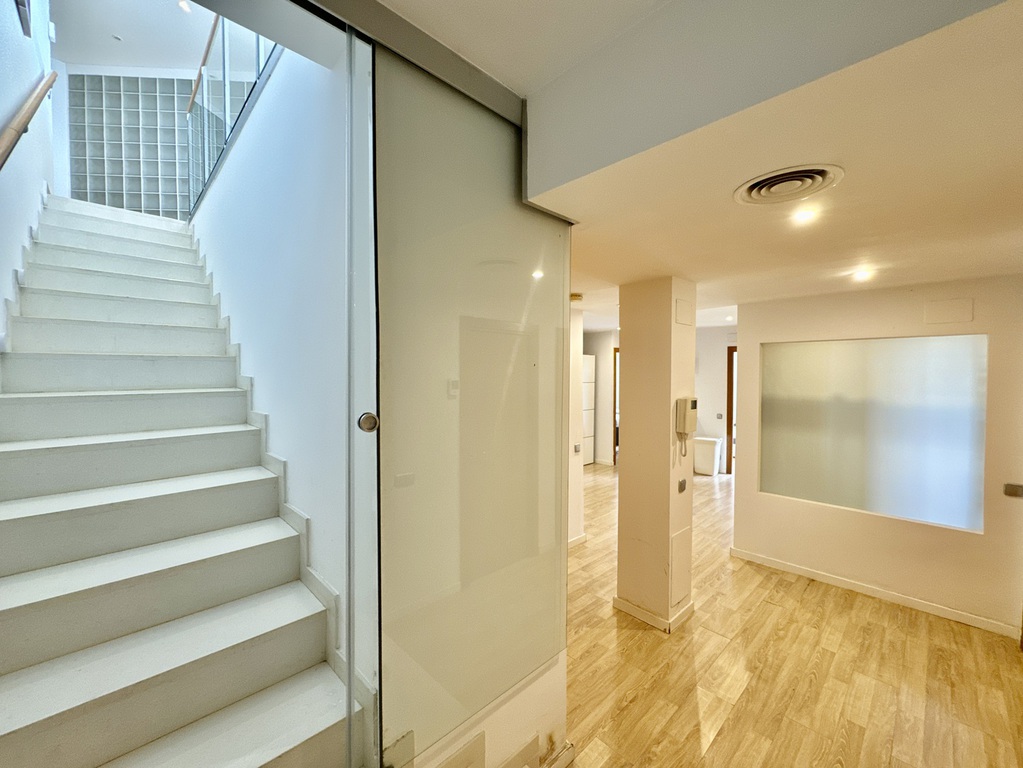 - Elegante recibidor: Al entrar, serás recibido por un elegante recibidor que conduce al amplio salón-comedor con suelo de madera IP y una original chimenea.