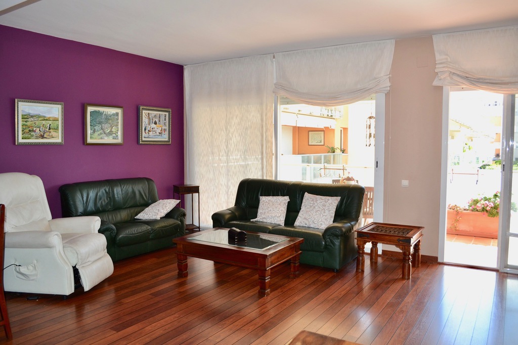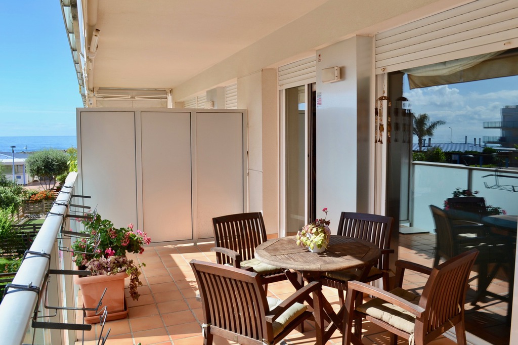 - Lovely furtnished and large 115m2 3 bedroom and 2 bathroom apartment complete renovated with wooden (Teca) hard floor, stunning sea views, just 40 meters from the beach! The property is sold with private parking, storage room and fully furnished (as seen in the photos) all included in the sale. The community offers 24h security, large garden area and swimming pool. From the communal area there is direct access to the beach and restaurants.
