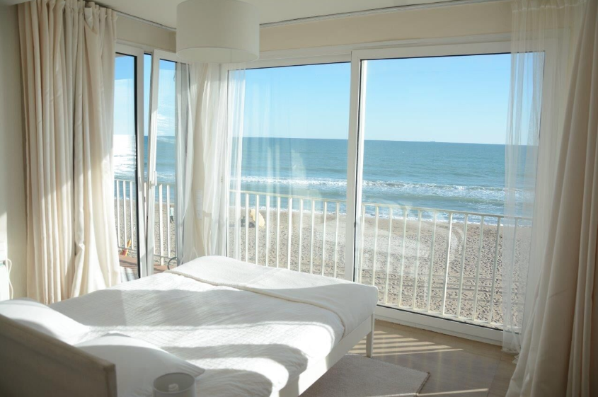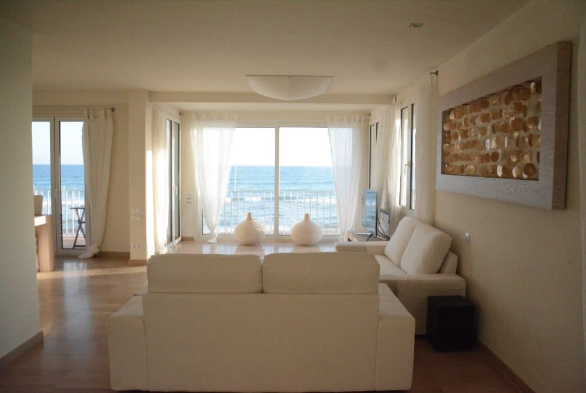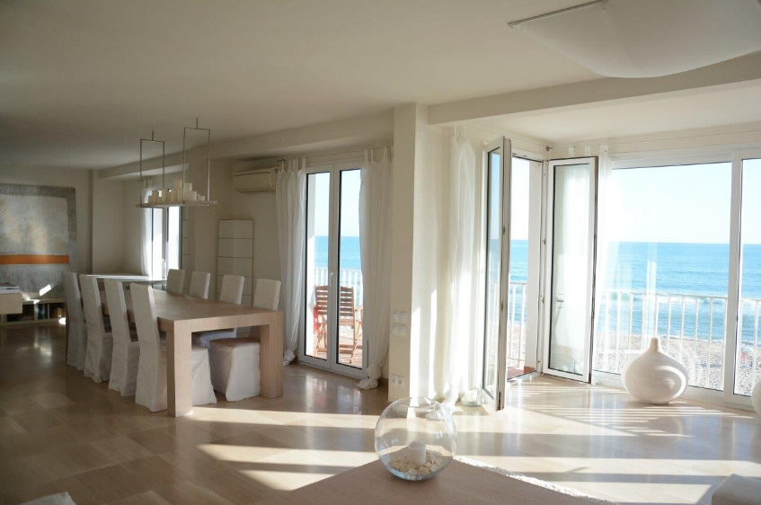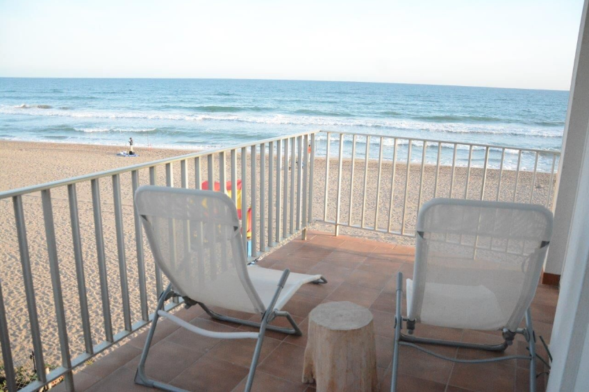 Exclusive Stylish zen apartment directly on the beautiful, virgin Gava Mar beach with endless sea views on one side and panoramic mountain views on the other side, surrounded by pine trees forest and dunes. 20 min form the center of Barcelona. - 3 bedrooms, one of which is a suite with bathroom - One queen bed and three beds - Living room which is a multifunctional lounge area - Dining room - Front balcony with dining table and Bioethanol chimney. - Fully equipped kitchen with all major appliances including fridge, freezer, stove, oven, microwave and dishwasher, - Coffee maker, kettle and microwave, - Drinkable tap water cleaned by Osmosis - Endless beach, sea and mountain views throughout the apartment - Direct beach access - Elevator - Apartment located on the 3rd, last floor. - Swimming pools - Private bar/restaurant at the swimming pool area - BBQ area in pine forest - Playground and kid pool - 2 tennis courts - Table tennis courts - Windsurf & kitesurf equipment storage area - Beach-side fresh water shower - assigned parking space.