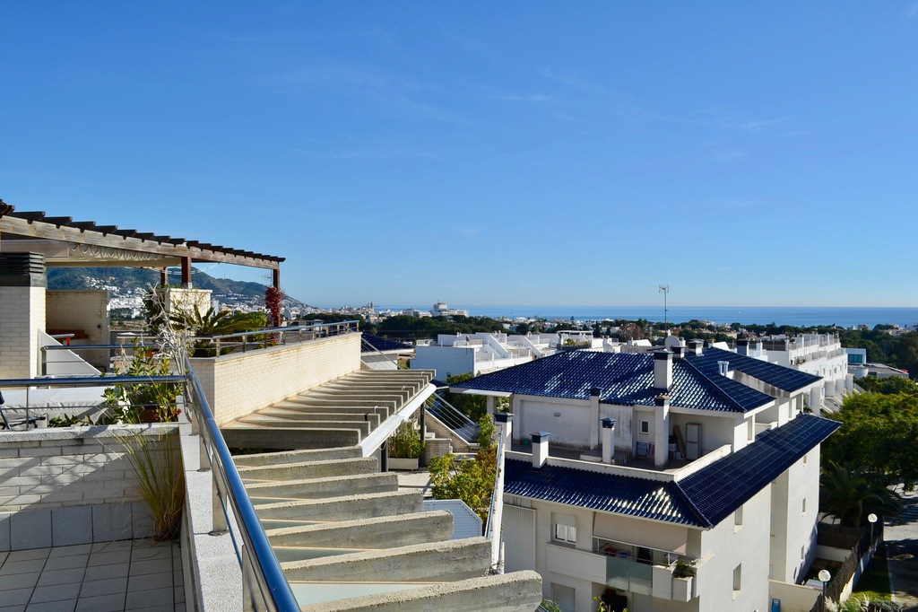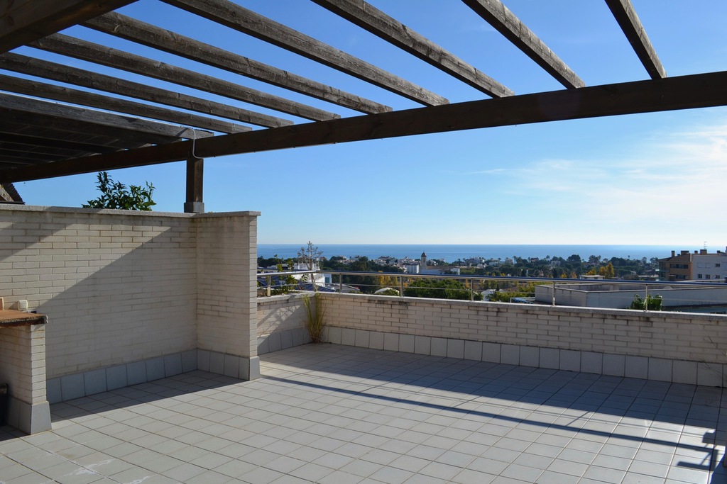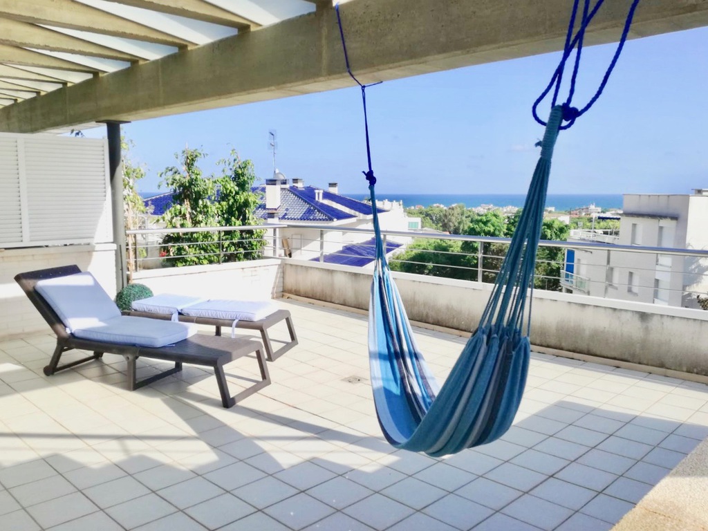Spectacular duplex, in the residential area of CAN PEI Sitges with panoramic views of the sea. Close to the public school, institute of fine arts, Caprabo supermarket (bus stop, 5 minutes by car and school transport from the French and Internationakl schools.) The property offers two suites with full bathrooms two terraces and a 50 meter solarium On the first floor there is a kitchen, laundry room, courtesy bathroom and terrace with access to the living room on the second floor, there are two suites with bathrooms and in the main room you can access the terraces and the solarium from the main bedroom.