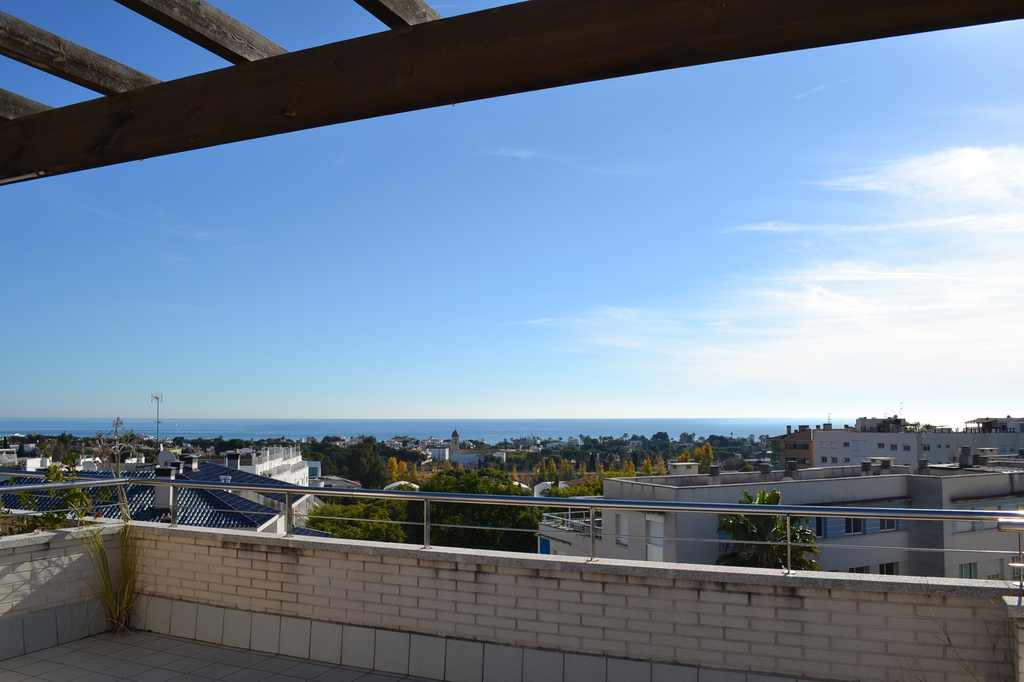 Stunning panoramic seaviews marble floor and staircase on the first floor Parquet floor 2 floor Osmosis Decalifier Hot and cold air ducts in all rooms 4 terraces 1 solarium 50 meters Terrace with lounge access Communal swimming pool Community garden Parking Elevator Sea views South orientation Aluminum exterior carpentry
