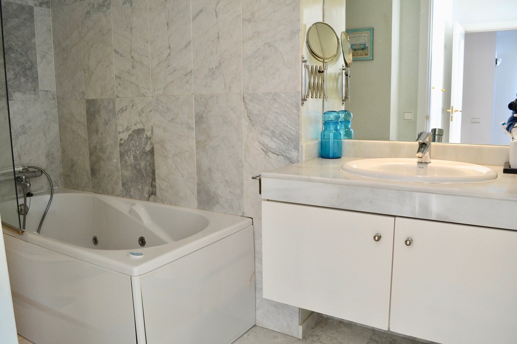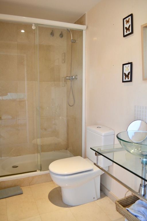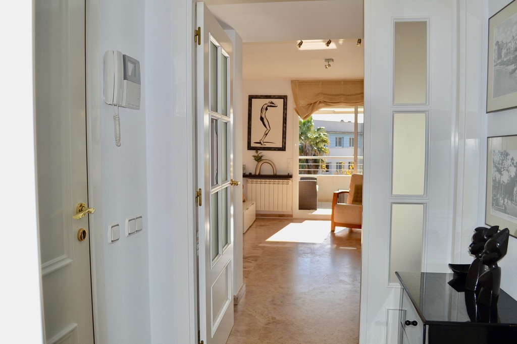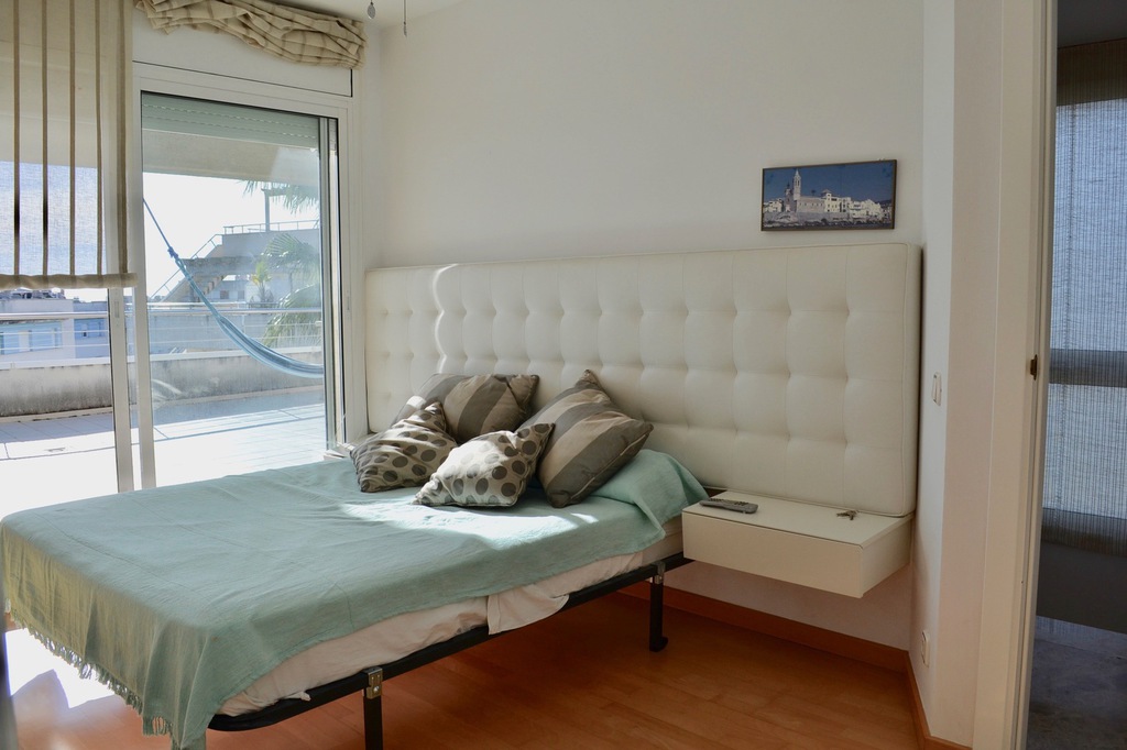 distribuidor las dos suites con baño y en la habitación principal accedes a las terrazas y al solarium desde la habitación principal ves desde la cama el mar con vistas panorámicas.