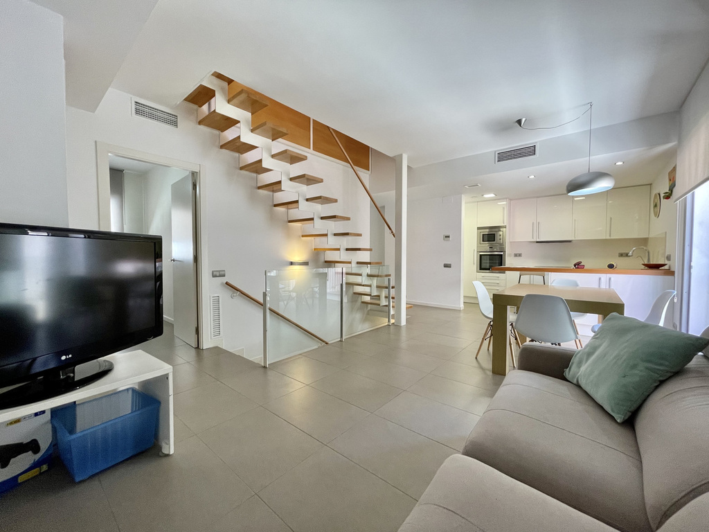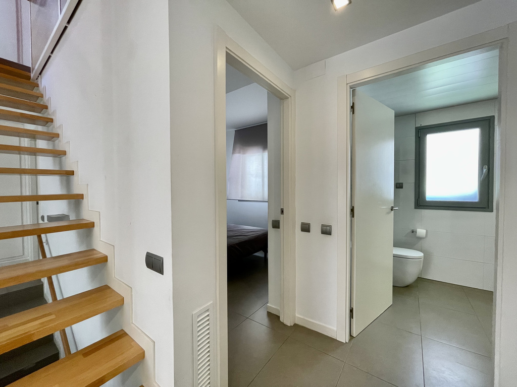 En la parte de arriba dispones de un solárium de 50 m2 y una buhardilla- despacho.