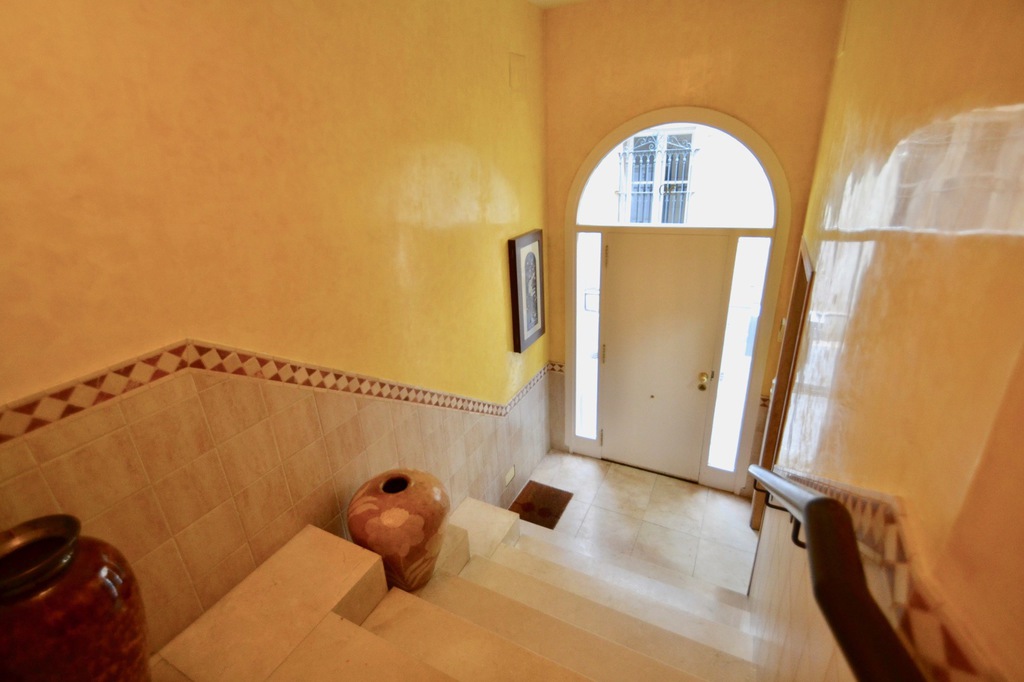 Lovely town centre townhouse, just 50 meters from Cap de la Villa, we find this lovely 4 bedroom townhouse with large private garrage. The property is divided over 3 floors, with a private parking on the ground floor, first floor the dining/lounge area and kitchen, on the second floor we find 3 bedrooms and a bathroom, on the top floor there is a large tarrace and en-sweet bedroom.