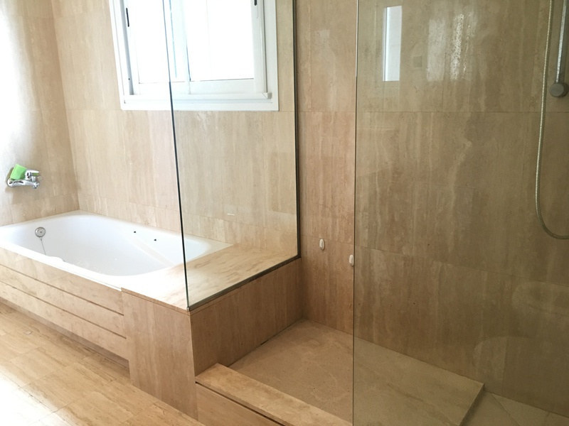 we arrive to a large hall, perfect as a second living room or used as office. Upstairs is also the sweet with its full bathroom, separate shower and bath. The sweet also offers a large terrace with