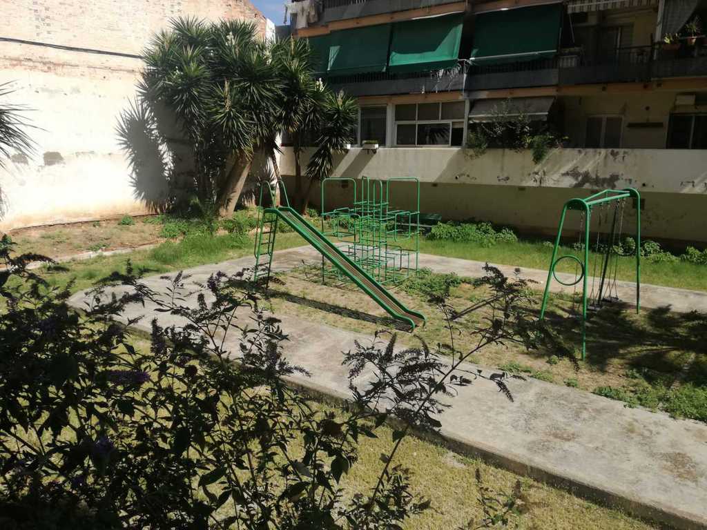 - En la zona de Josep Coroleu disponemos de unos bajos con una terraza de 15 metros cuadrados cubierta. El edificio dispone de una zona comunitaria con columpios que se ve desde la terraza la distribución de los bajos es de 3 habitaciones una doble y dos sencillas una de las habitaciones sencillas tiene armario empotrado la cocina está totalmente equipada y tiene un lavadero que se accede desde la cocina el edificio está condicionado para gente con movilidad reducida tiene una rampa en la entrada. Delante del edificio hay un parque natural muy bonito.