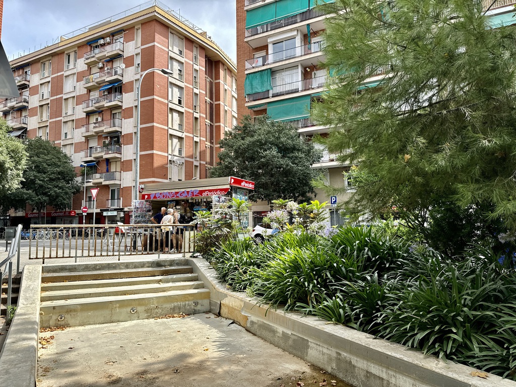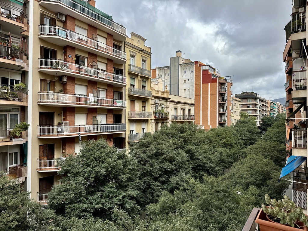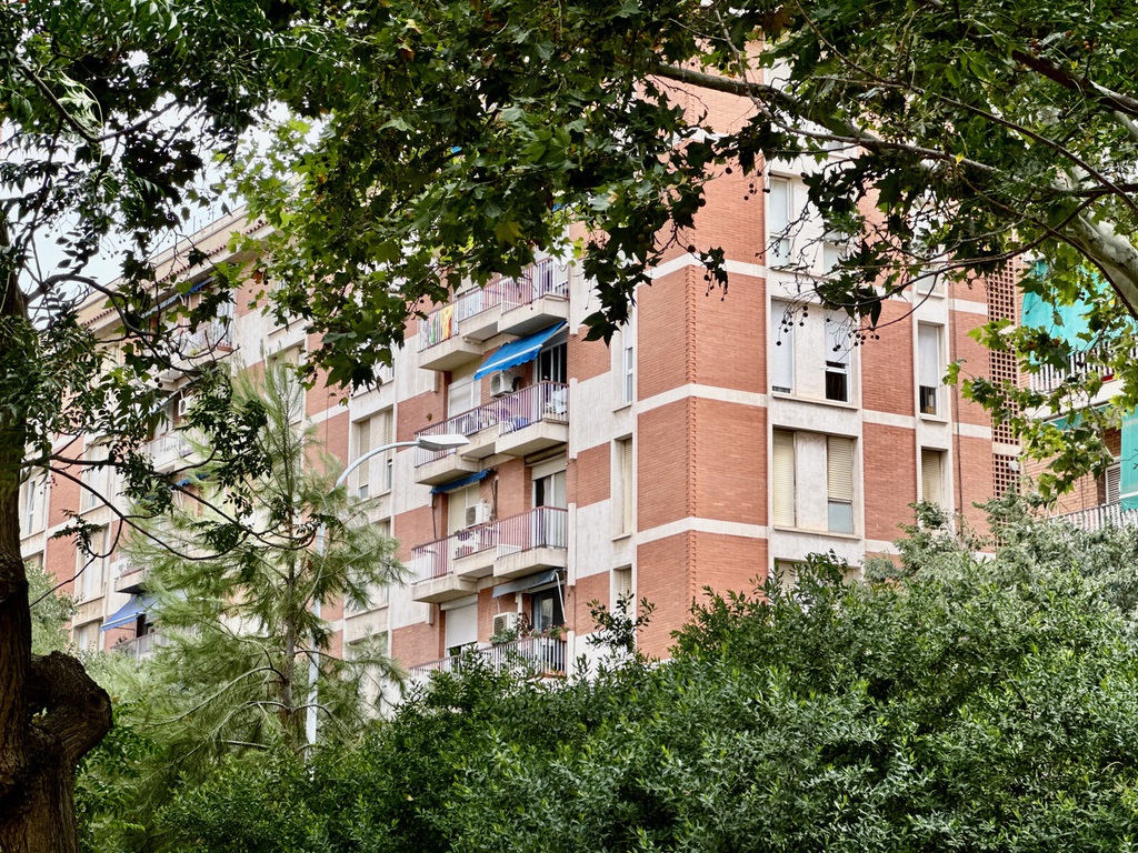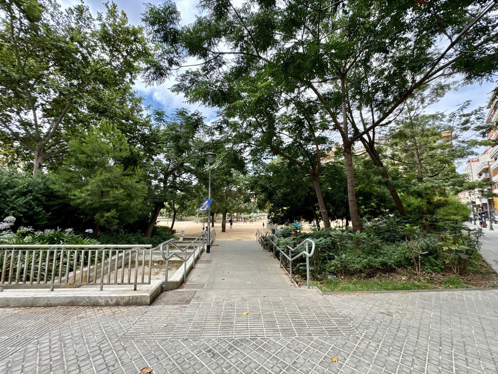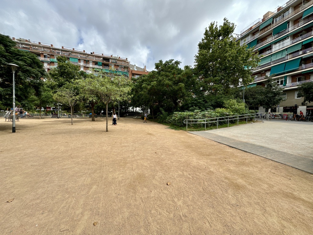 El salón, luminoso y acogedor, se abre a un balcón que casi hace esquina con los hermosos jardines de Can Mantega. Este tranquilo oasis verde en medio de la ciudad es perfecto para relajarse, y cuenta con un parque infantil y un área canina, ideal para familias y amantes de los animales.