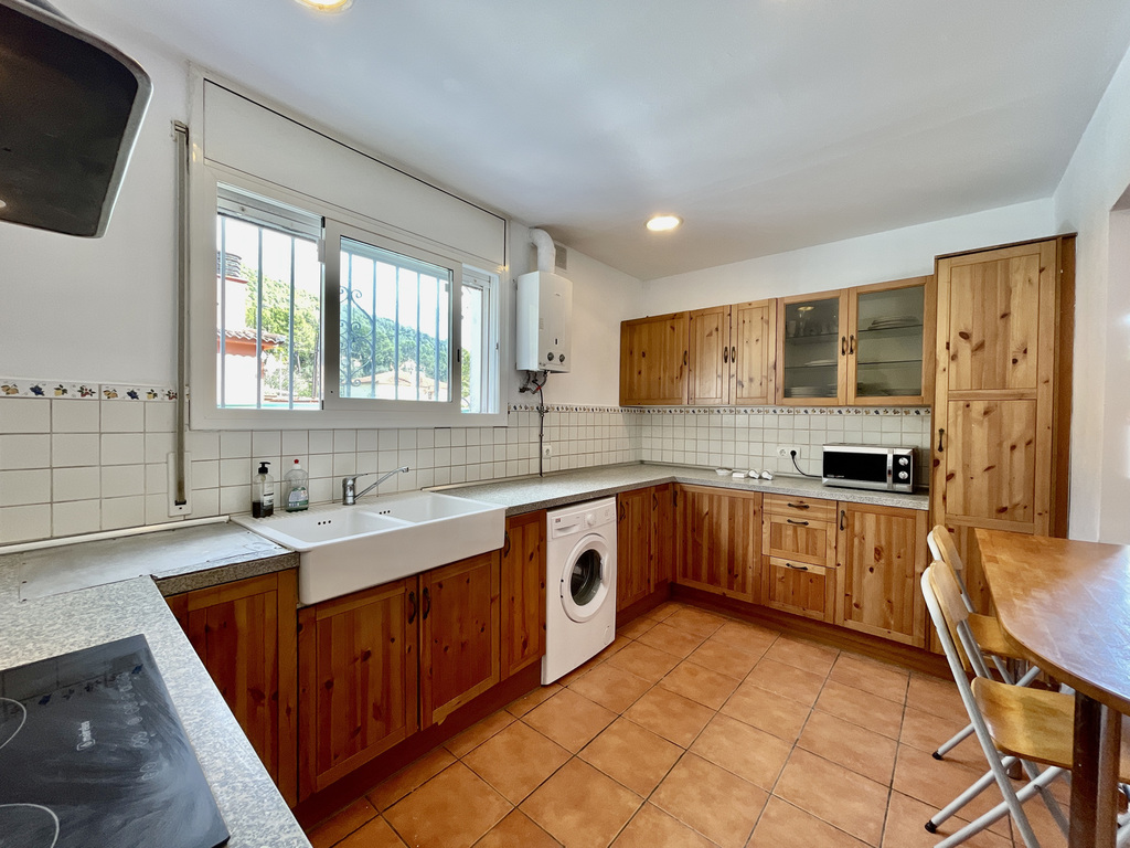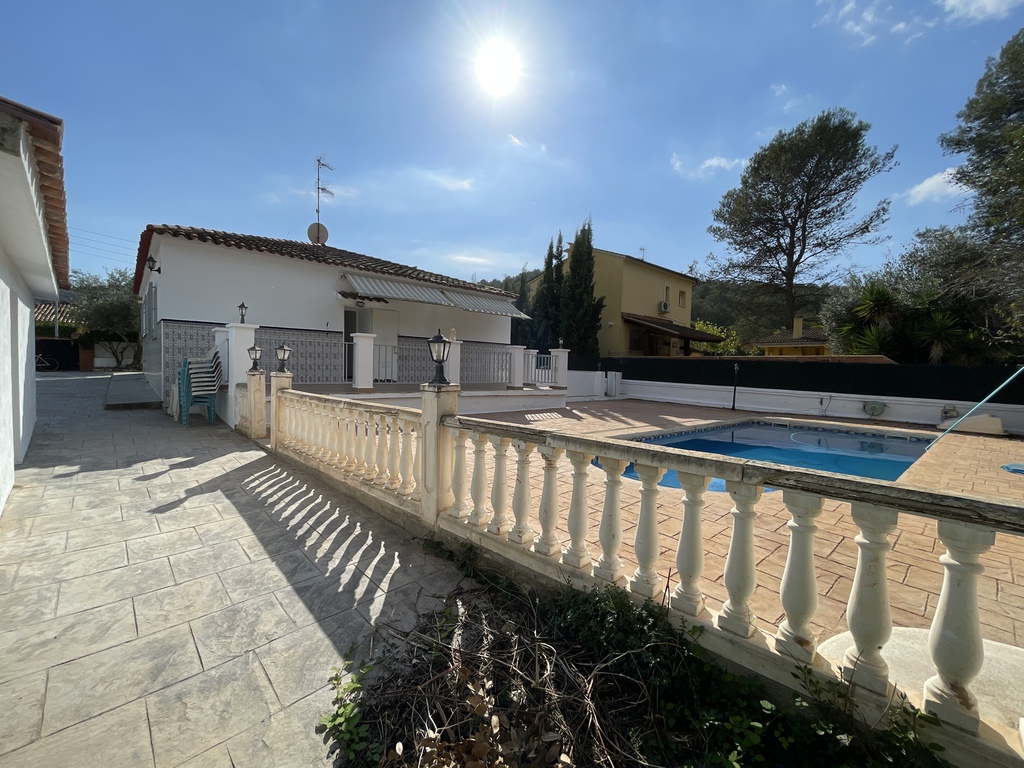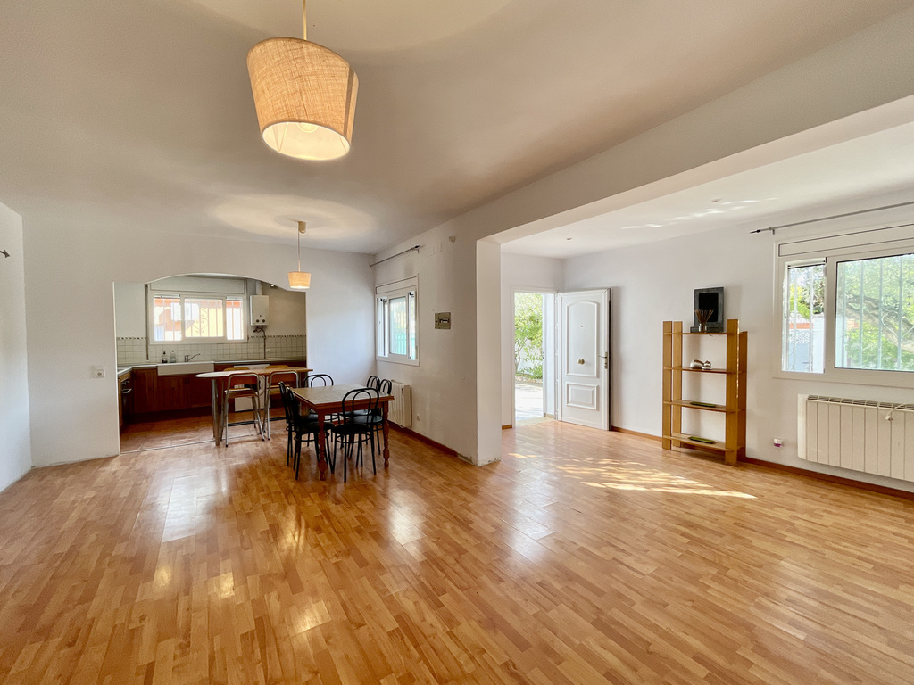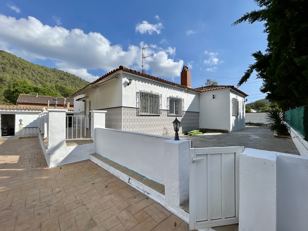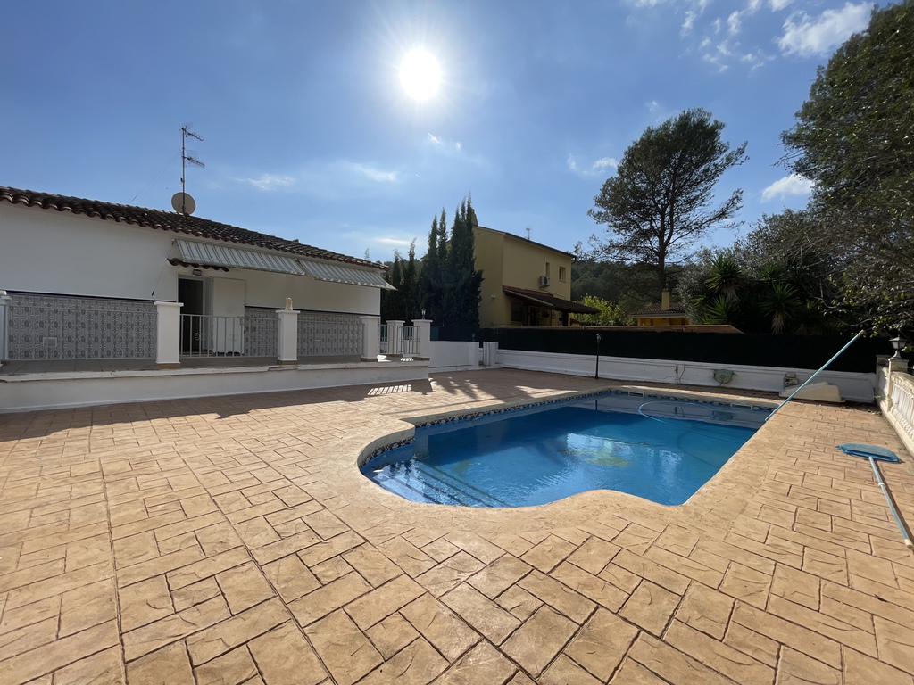 Una vivienda muy funcional para una familia. La casa solo tiene una planta y esta todo al mismo nivel del jardín y piscina privada, con lo cual, es muy práctica para que pueda jugar los niños. 4 habitaciones dobles, muy amplias y luminosas, sol todo el día. Cocina americana y salón de 40 metros diáfano, con chimenea. 1 baño completo. En una de las habitaciones dobles, tienes acceso al Porche con toldo para poner una mesa grande con sillas para disfrutar de comidas y cenas con vistas al jardín y piscina. En la Parcela, está construida una caseta con posibilidad de hacer un loft separado.