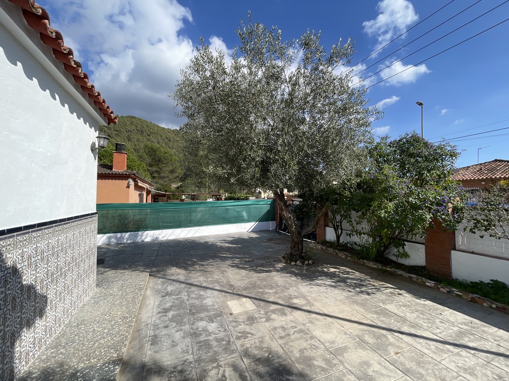 También tiene una caseta de PVC para poner las herramientas de jardinería. Puedes aparcar el coche dentro de la Parcela. El terreno y las calles son totalmente Llanas. Tiene vistas despejadas mucho sol y el microclima del Garraf.