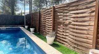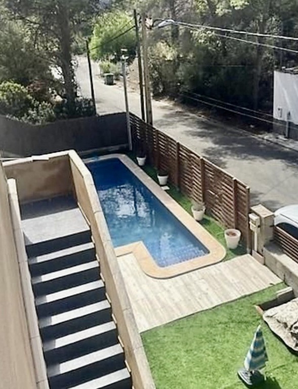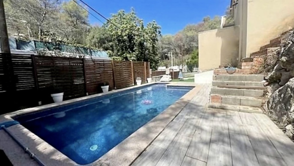 - Exteriores: La casa cuenta con un amplio terreno en la parte trasera y un hermoso jardín con piscina en la parte delantera, ofreciendo espacios ideales para el ocio y el relax.