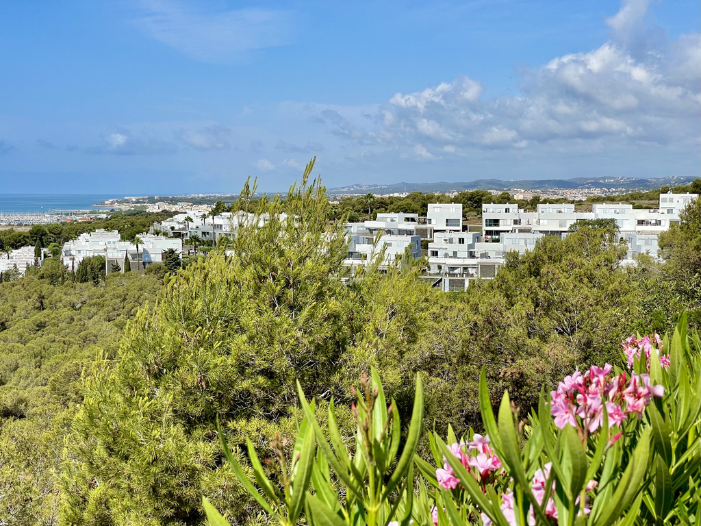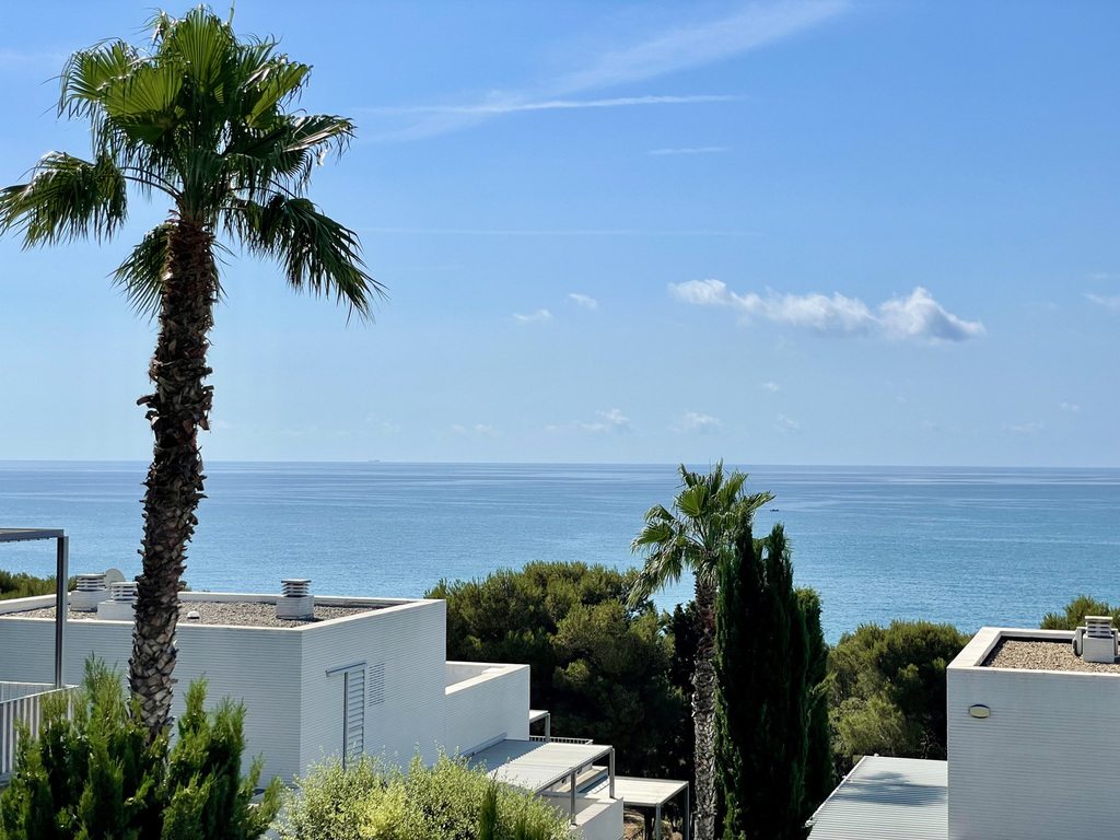 Muy luminoso y moderno apartamento con vistas al mar y situado a sólo 10 minutos en coche de Sitges (a unos 8 km). A unos 25 minutos del aeropuerto internacional de