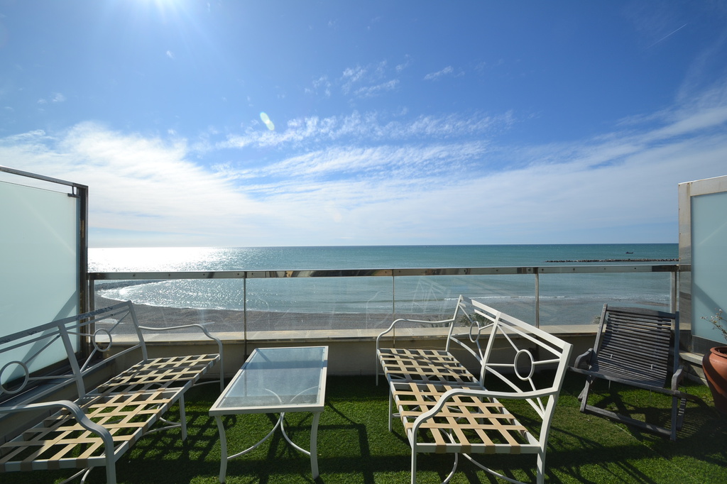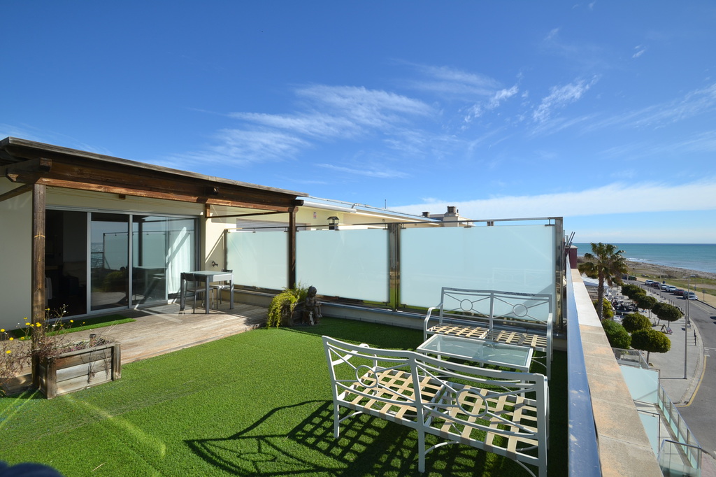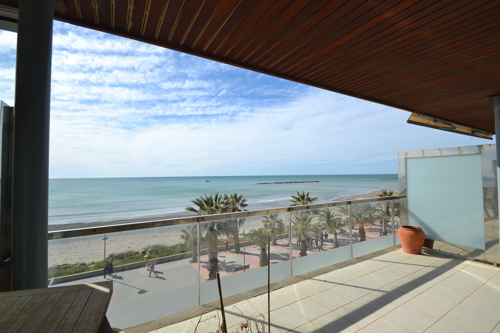Este ático dúplex en primera línea de mar es una verdadera joya. Con vistas panorámicas al Mediterráneo, ofrece una experiencia única que combina lujo y comodidad. La vivienda cuenta con dos amplias terrazas: una accesible desde el salón y otro sorprendente solárium de 60m2 en la planta superior. Disfrute del sol, relájese bajo el cielo estrellado o comparta momentos inolvidables con familiares y amigos en estos espacios al aire libre.