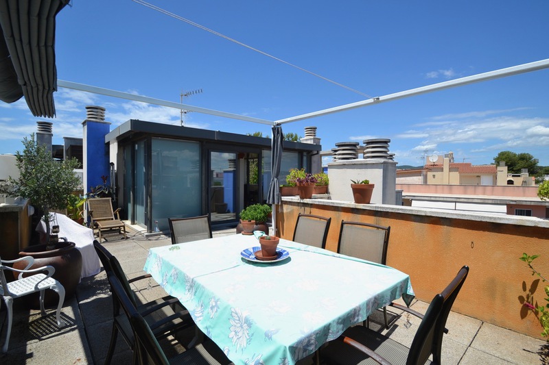 Coronando el edificio se encuentra este fabuloso ático dúplex ubicado a unos cuantos pasos de la estación del tren de Cubelles con un diseño único y con todos los