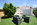 La torre está rodeada por un amplio jardín con un espacio para hacer barbacoa con una