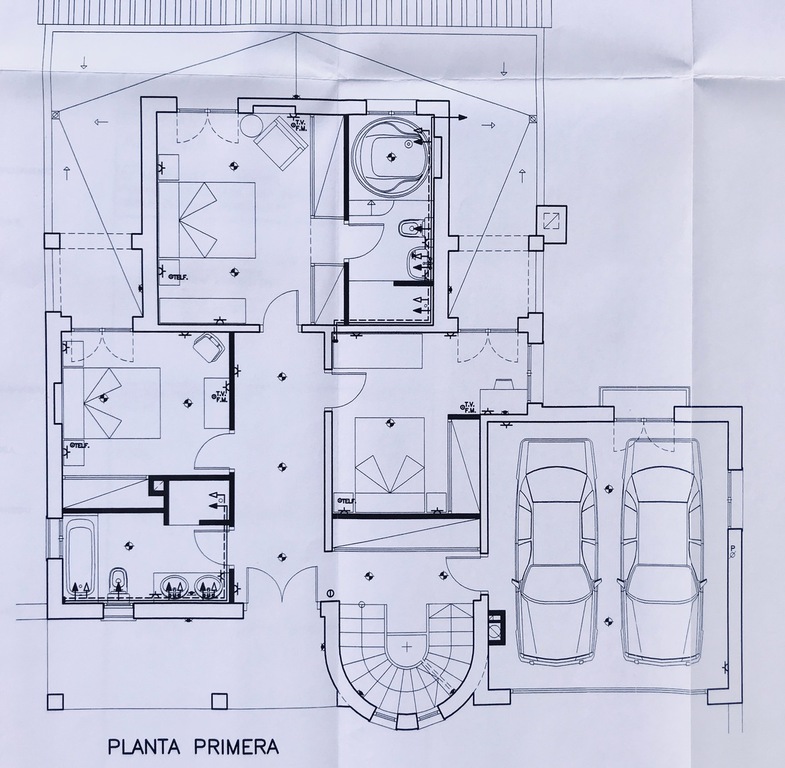 The villa is build over 3 floors with several separated bedrooms and living areas.