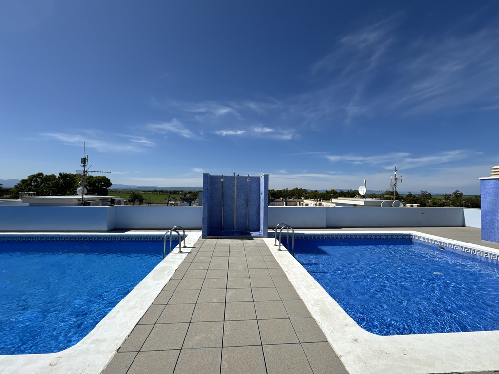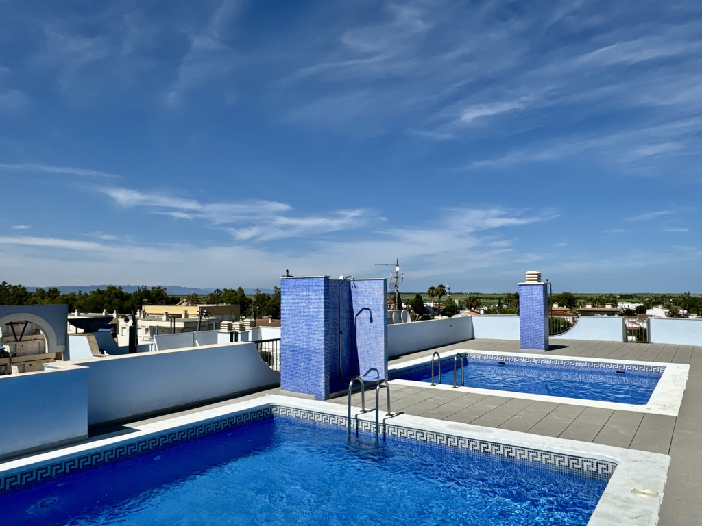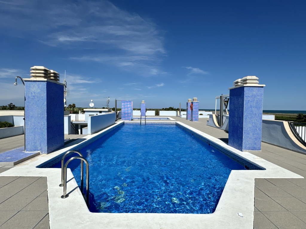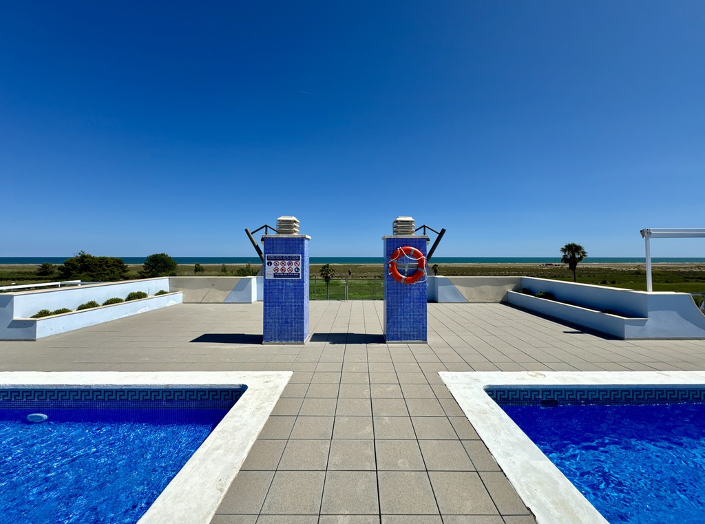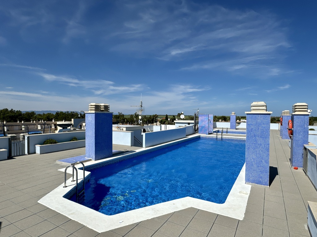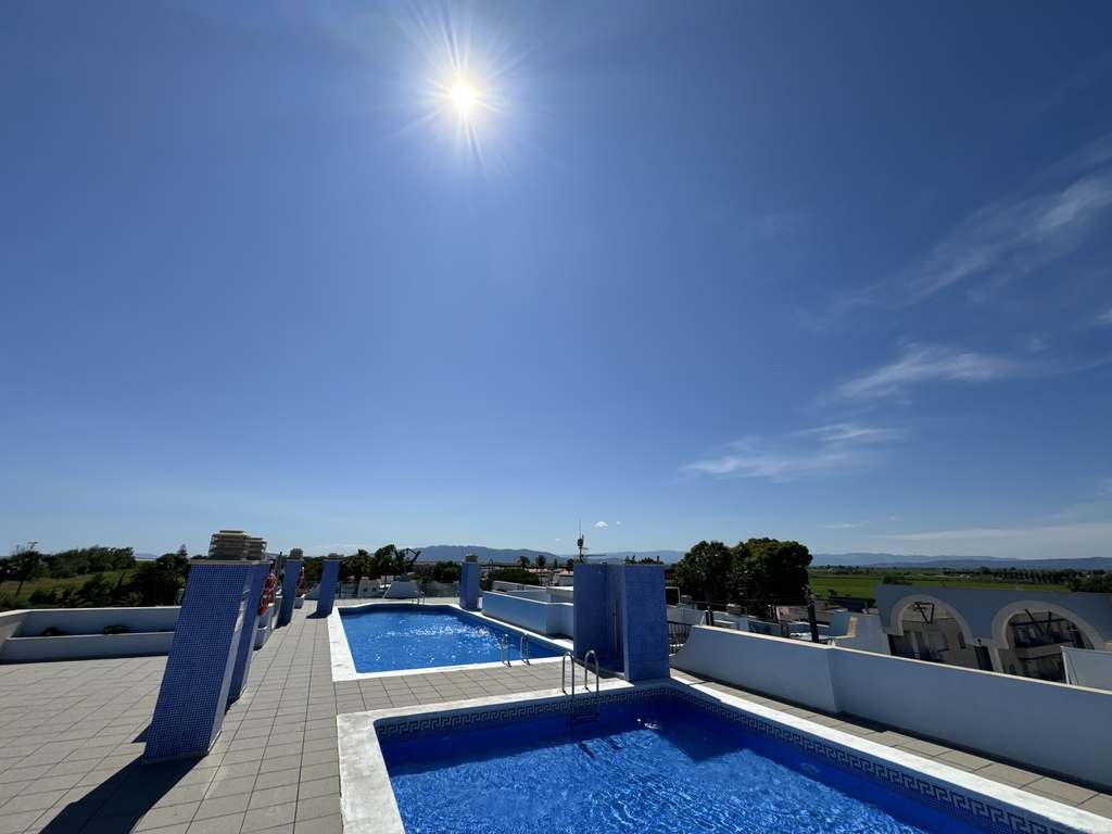 Además, cuenta con una amplia terraza con piscina comunitaria en el tejado de la finca con preciosas vistas sobre el mar y la delta.