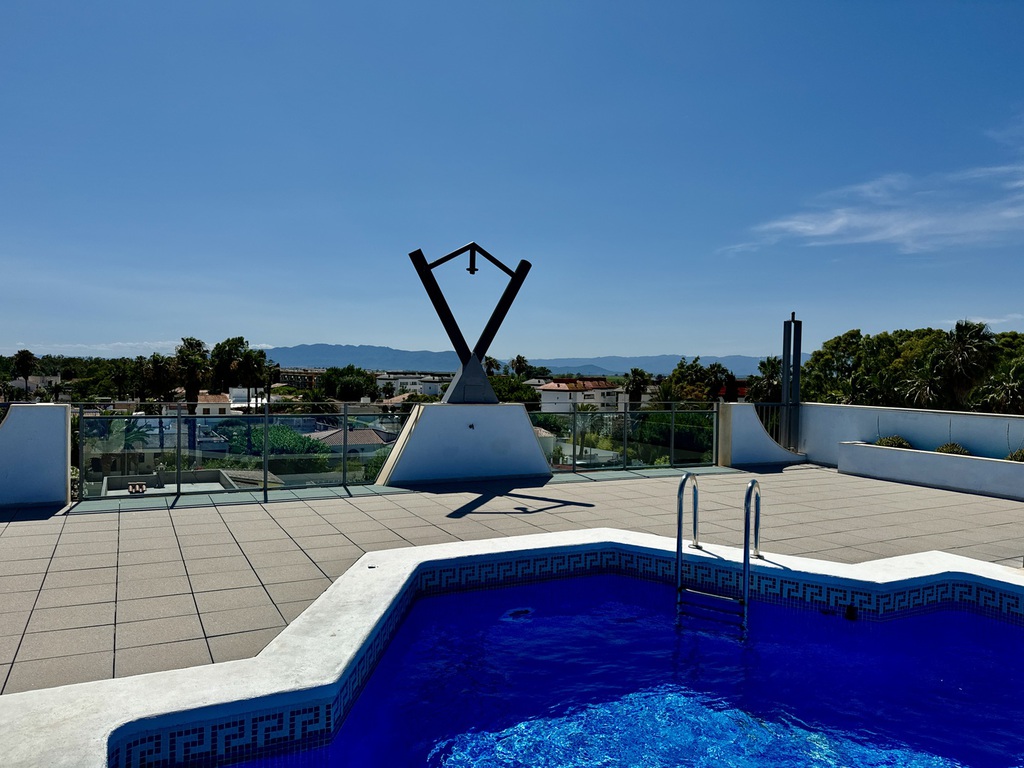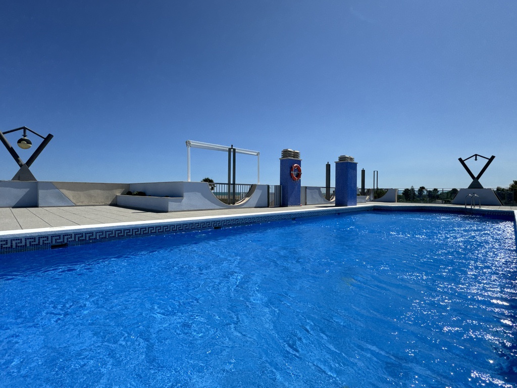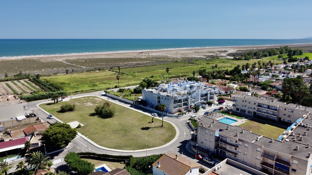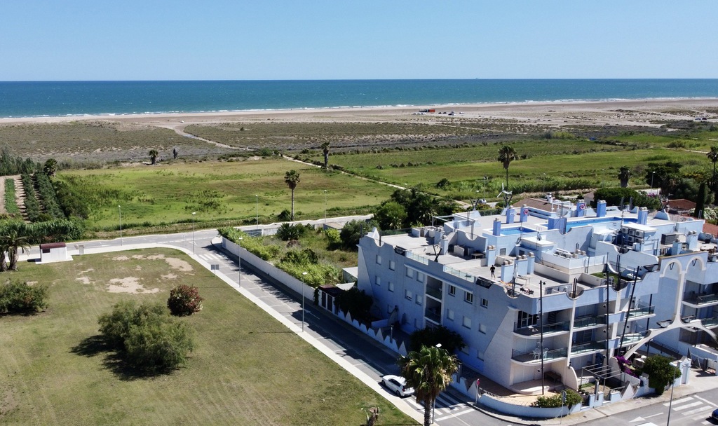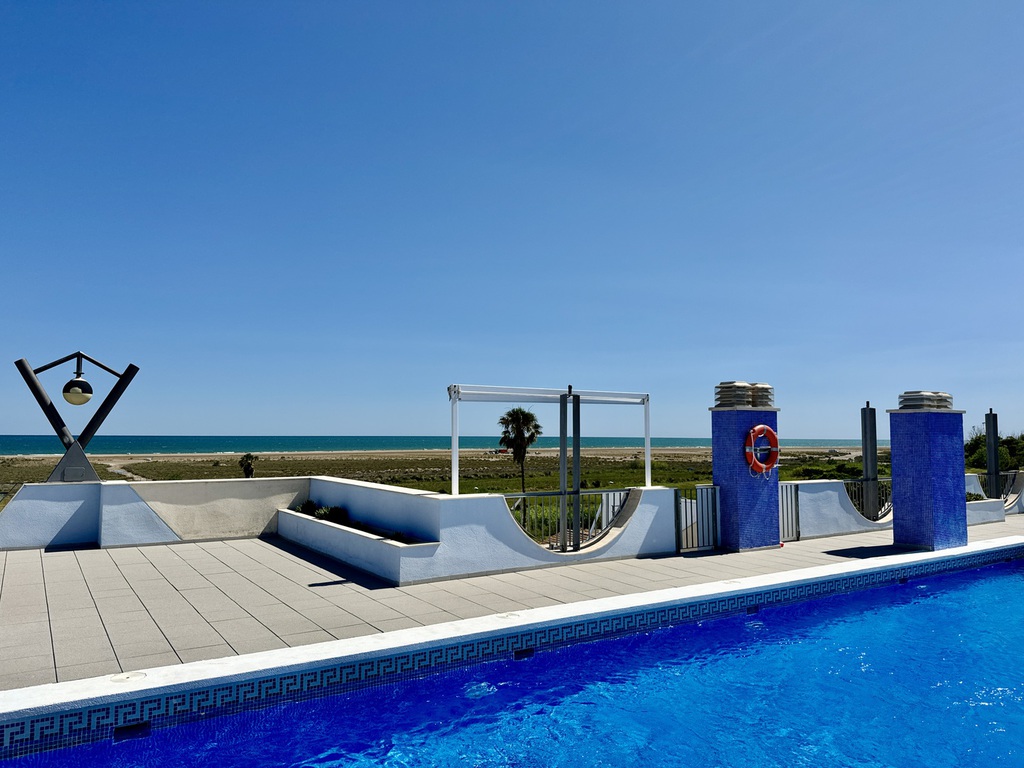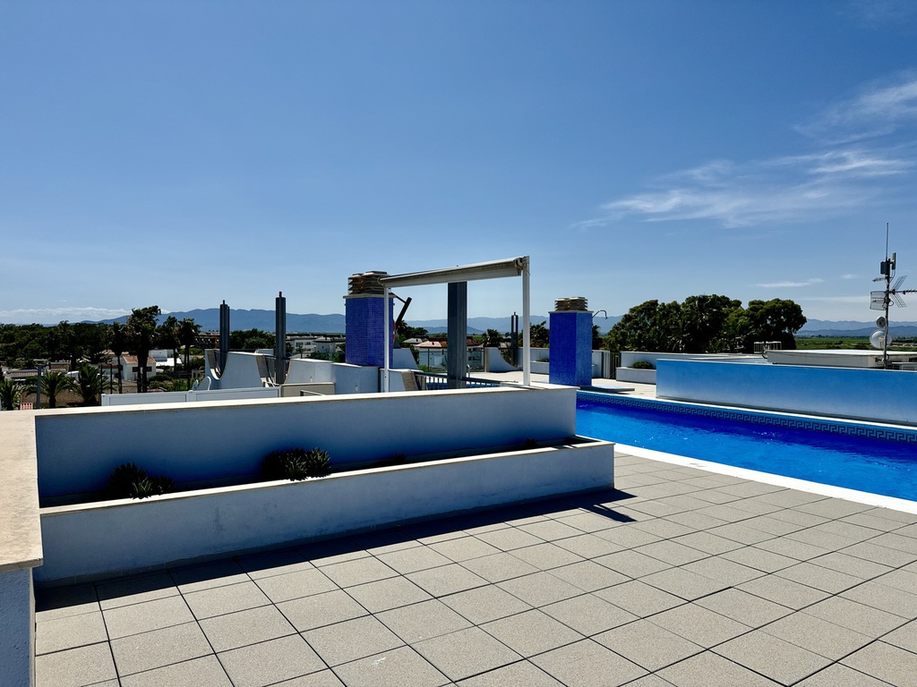 Además, cuenta con una amplia terraza con piscina comunitaria en el tejado de la finca con preciosas vistas sobre el mar y la delta.