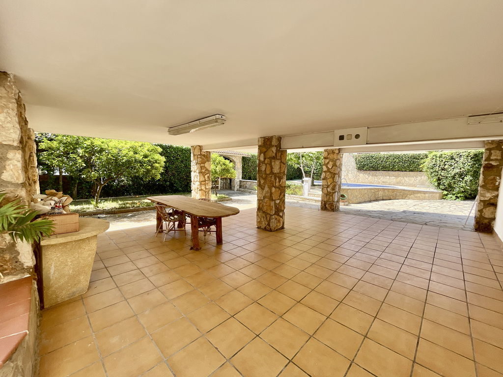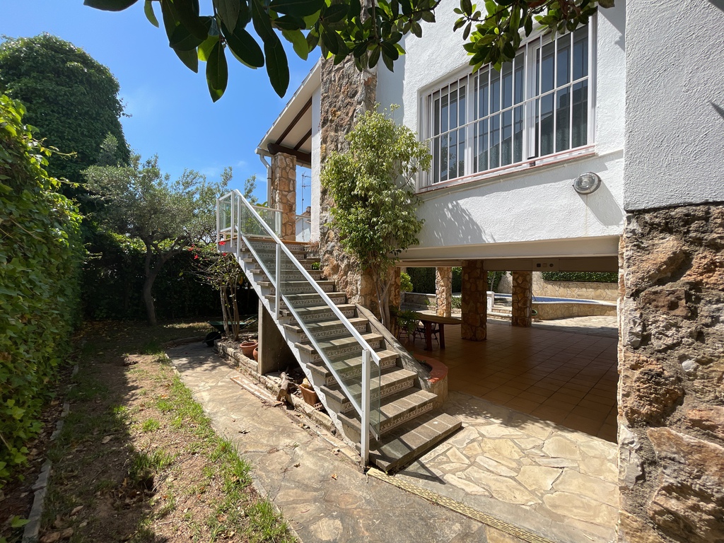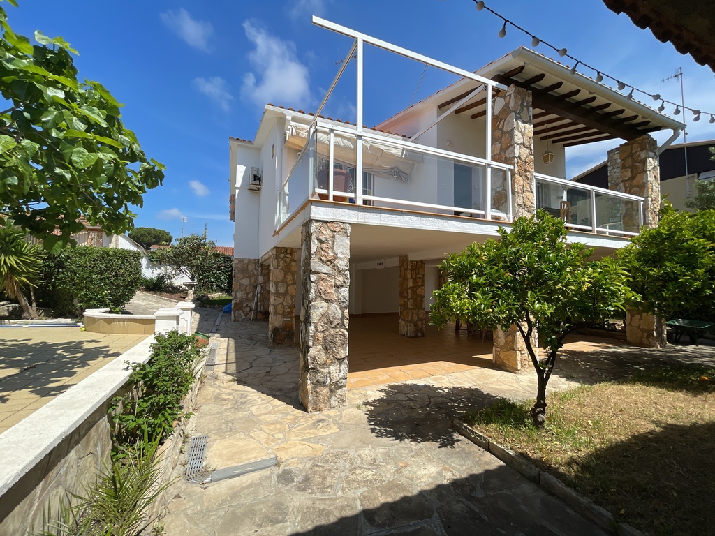 exterior amplio, bonito y privado, donde encontramos una piscina y zona para tomar el sol, una barbacoa y una terraza cómoda en la primera planta. En la planta baja encontramos el garaje y un