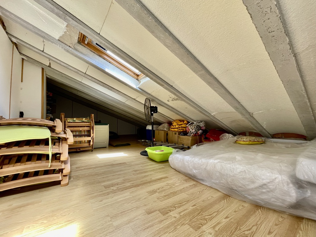En el distribuidor de la segunda planta, hay unas escaleras plegables que se accede una buhardilla de 30 metros cuadrados. perfecto como otra habitación para niños, sala de juegos o trastero.