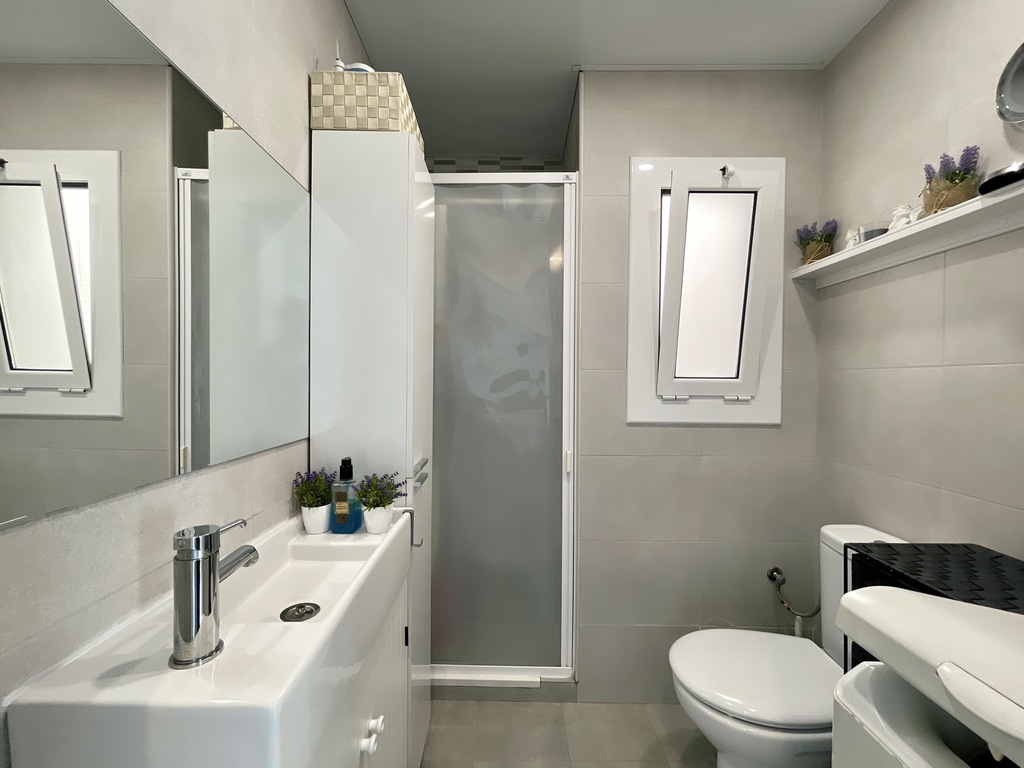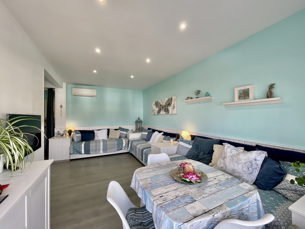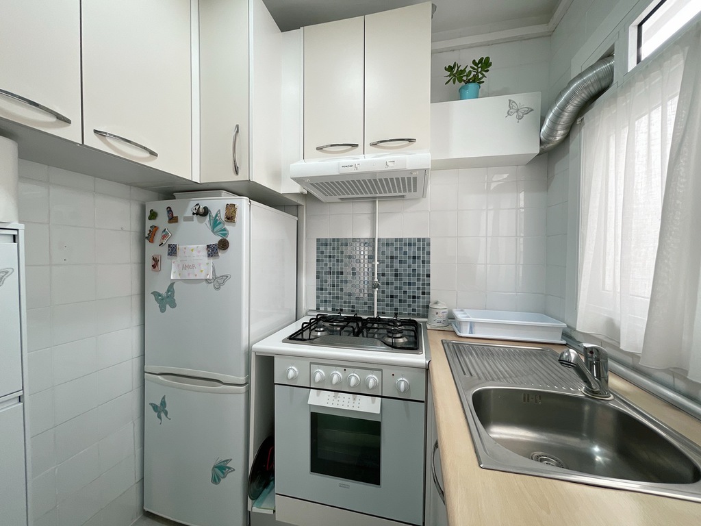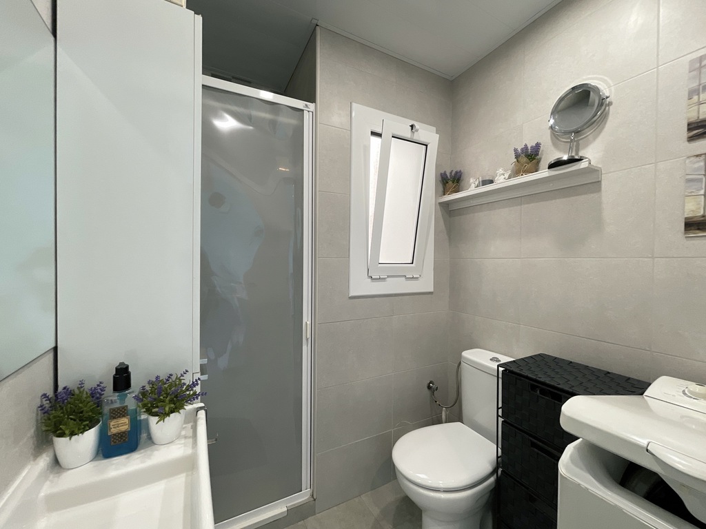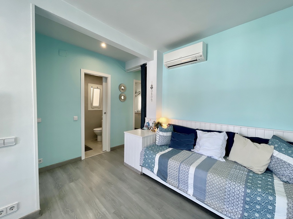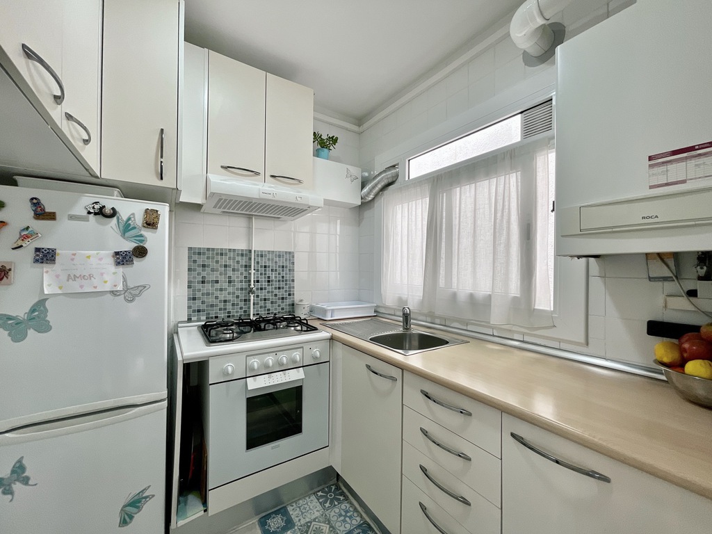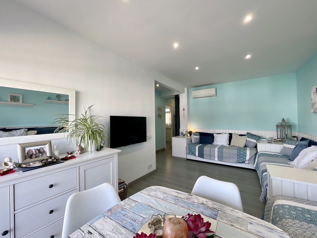 Encantador y acogedor apartamento de estilo moderno marinero. A tan solo 100 metros de la playa. Desde la terraza puedes apreciar y disfrutar de las vistas del jardín infantil comunitario y del mar. Totalmente y recién reformado, para entrar a vivir.