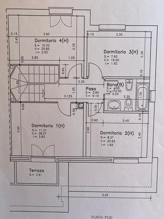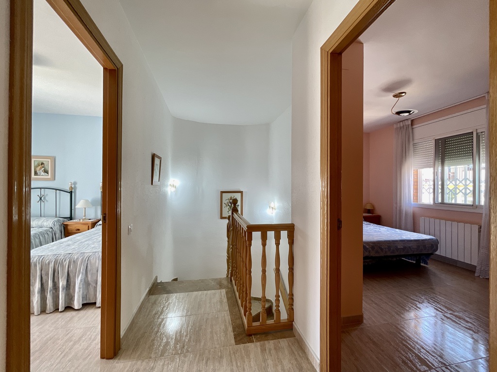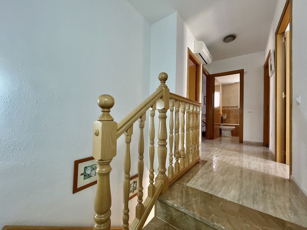Subiendo la escalera, nos da acceso a la zona de noche con 4 dormitorios y un Baño completo con bañera.