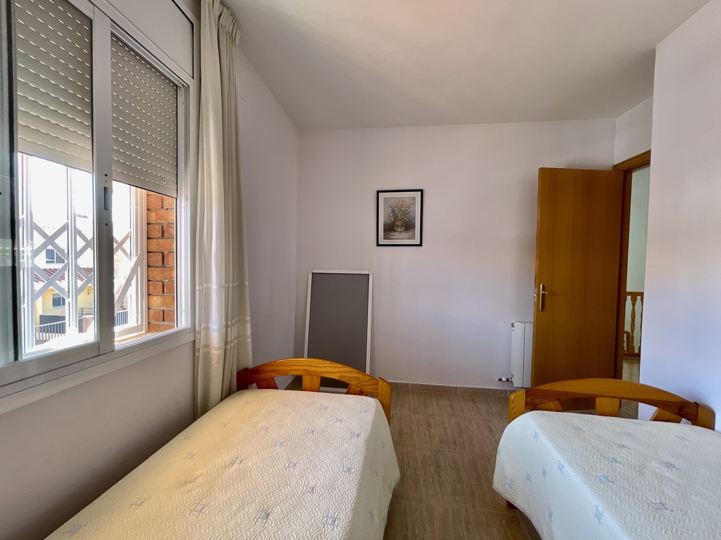La vivienda, construida sobre dos plantas, ofrece amplios espacios exteriores con varias tarrazas. En la planta baja encontramos una habitación grande, WC la cocina y comedor con acceso directo al jardín privado donde encontramos la zona BBQ y un anexo/trastero.