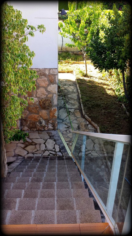 The 400m2 land plot offers a cosy feel with a nice garden with olive tree, mandarin tree and lemon tree, nice Private pool and large outside BBQ area with oven. The house has a closed garage and