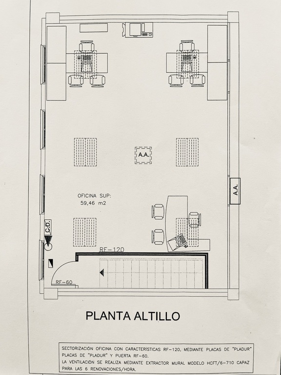 La nave cuenta con un entrepiso donde se ubica la oficina, con acceso independiente desde el exterior. En la fachada principal se encuentran los accesos y un área para los servicios eléctricos.