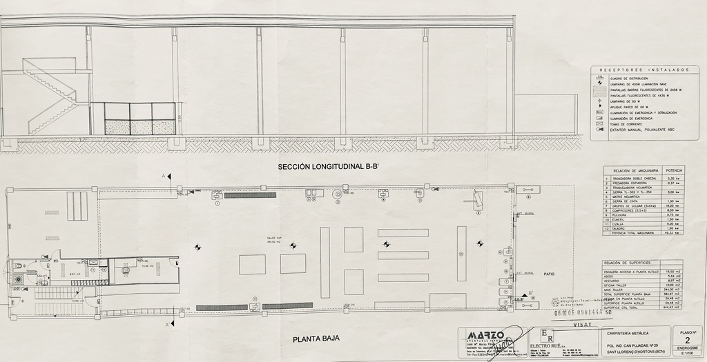 En la planta baja, se encuentra la zona de taller, accesos, baños, vestuario y una pequeña oficina.