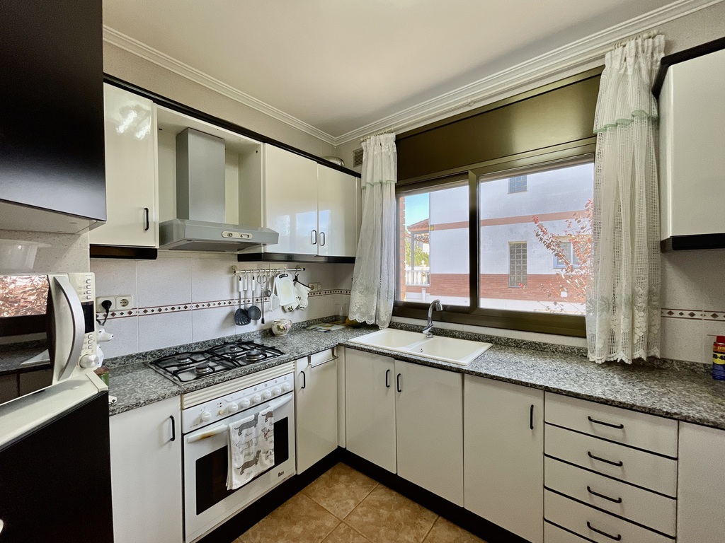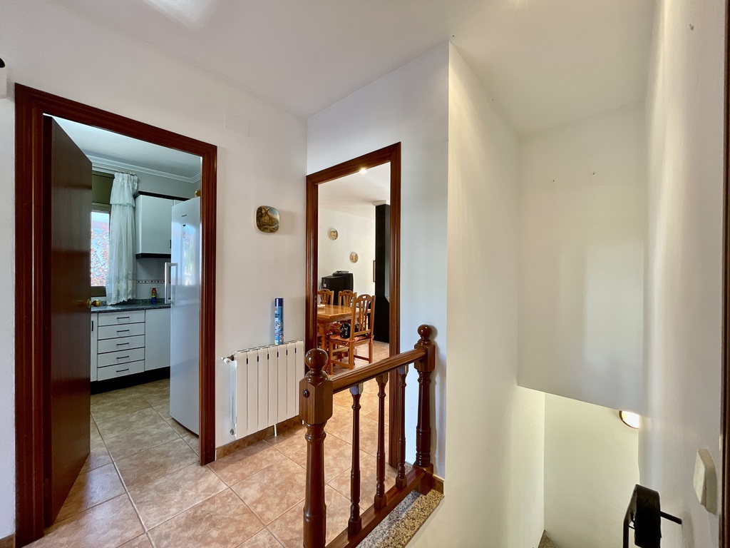 Desde el comedor, accedemos a la cocina independiente. La planta principal se completa con un baño completo y una habitación en suite con baño propio. Además, tres habitaciones dobles con armarios empotrados ofrecen espacio y comodidad para toda la familia.