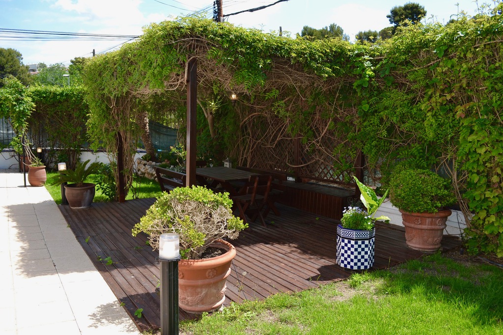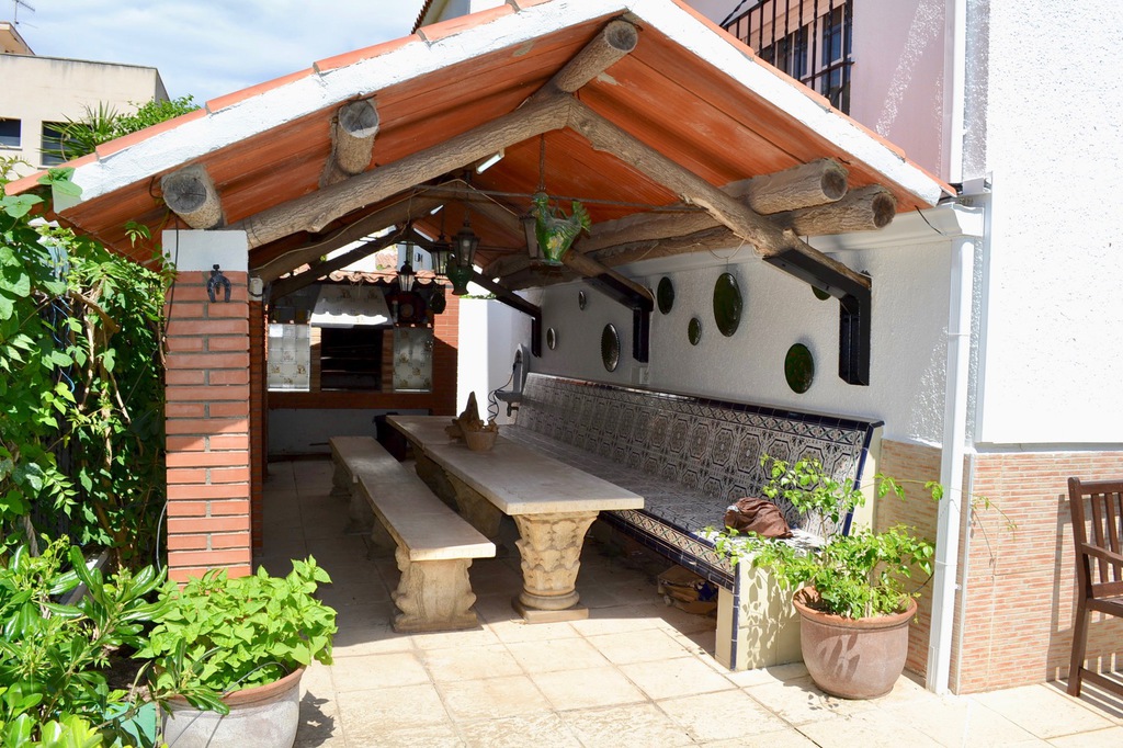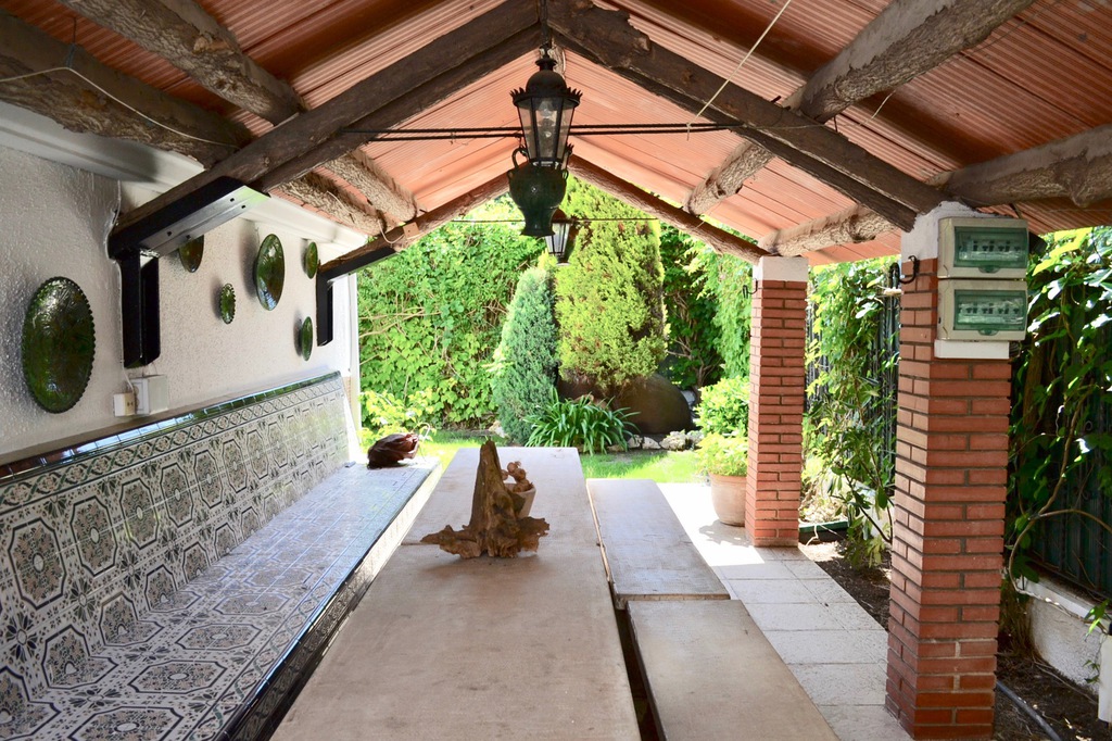 La casa ofrece un gran jardín, en la parte trasera de la propiedad una cómoda terraza techada y área de barbacoa, ideal para reuniones familiares ofreciendo sombra en los cálidos meses de verano.