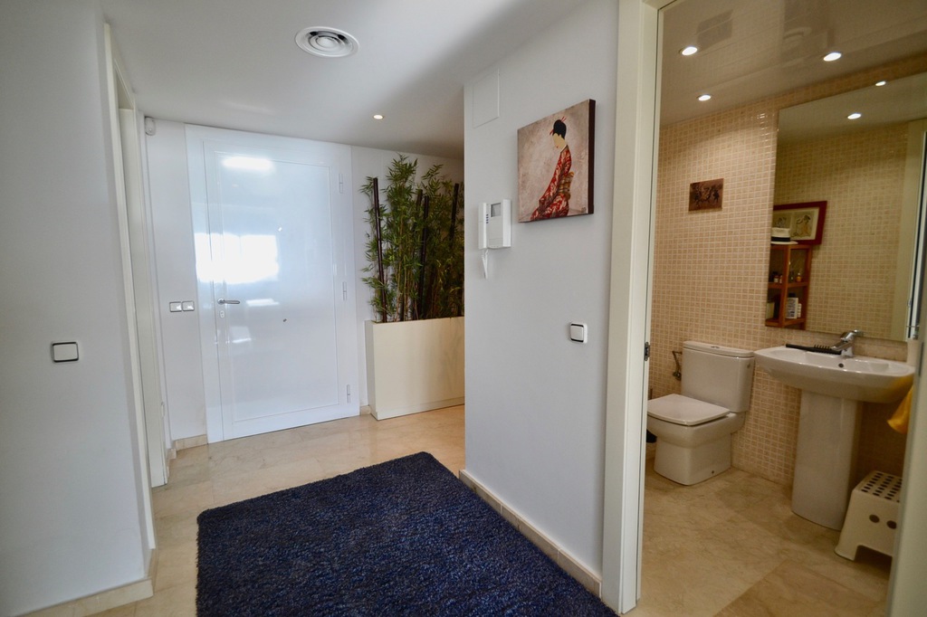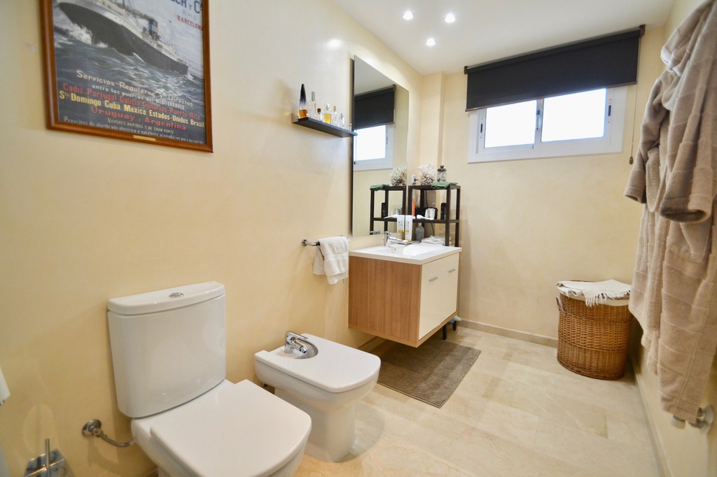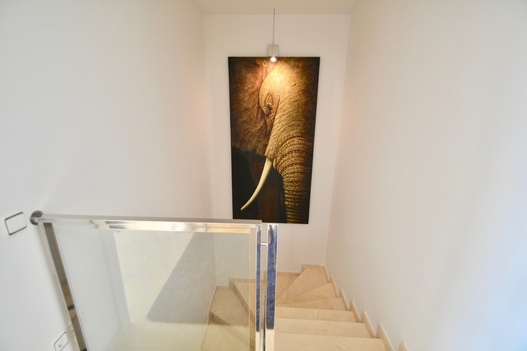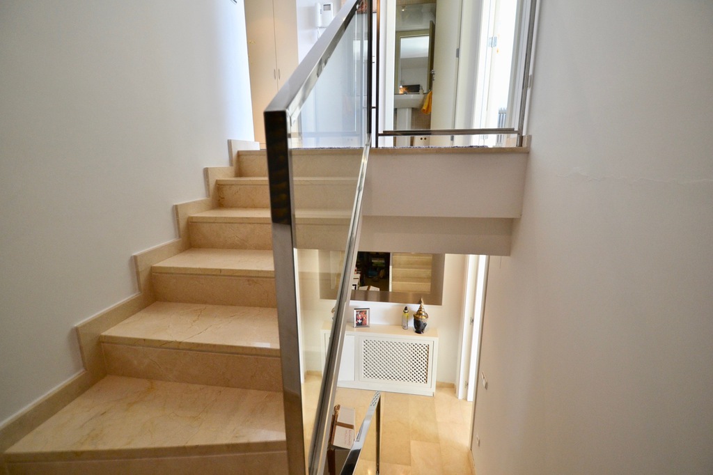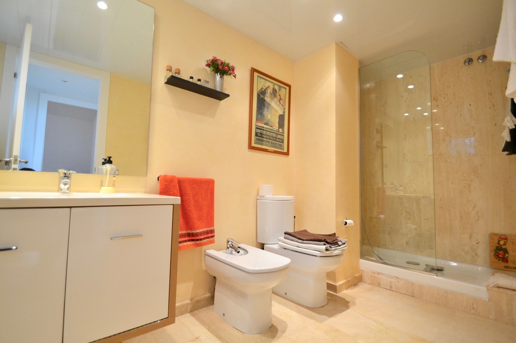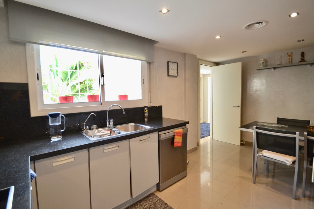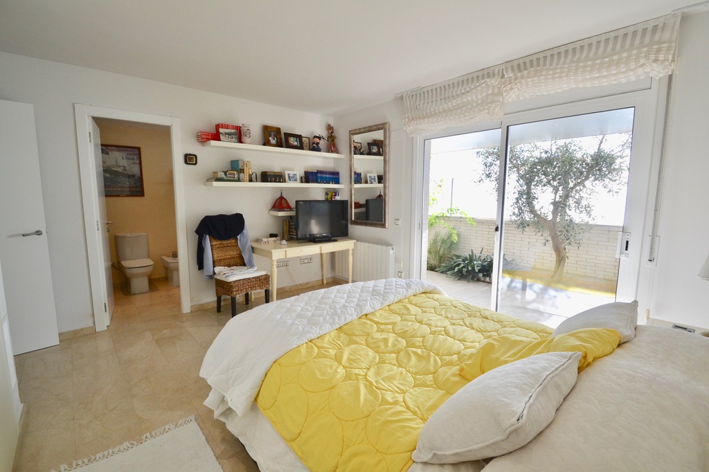 Going down stairs we find two large, double bedrooms, one with a separate bathroom, with access to a interior private patio, and the en-sweet main bedroom giving access to another closed (with private glass) terrace. There is a possibility to create a large 45m2 roof terrace, all is needed is stairways to go up (several neighbours have already done this).