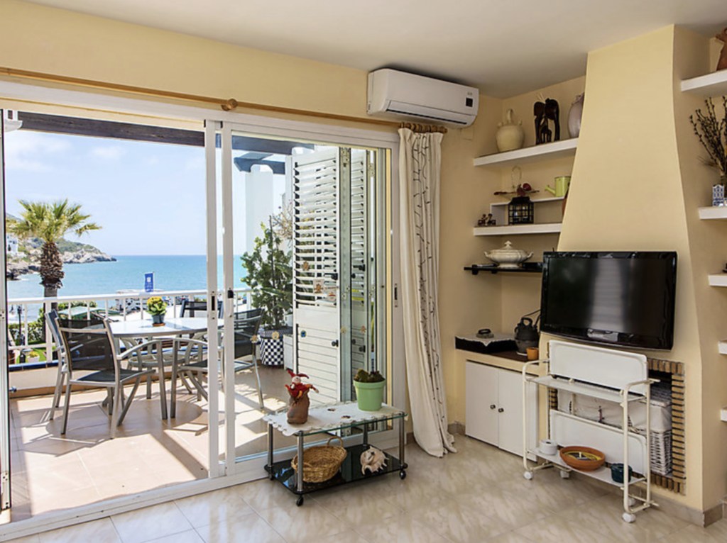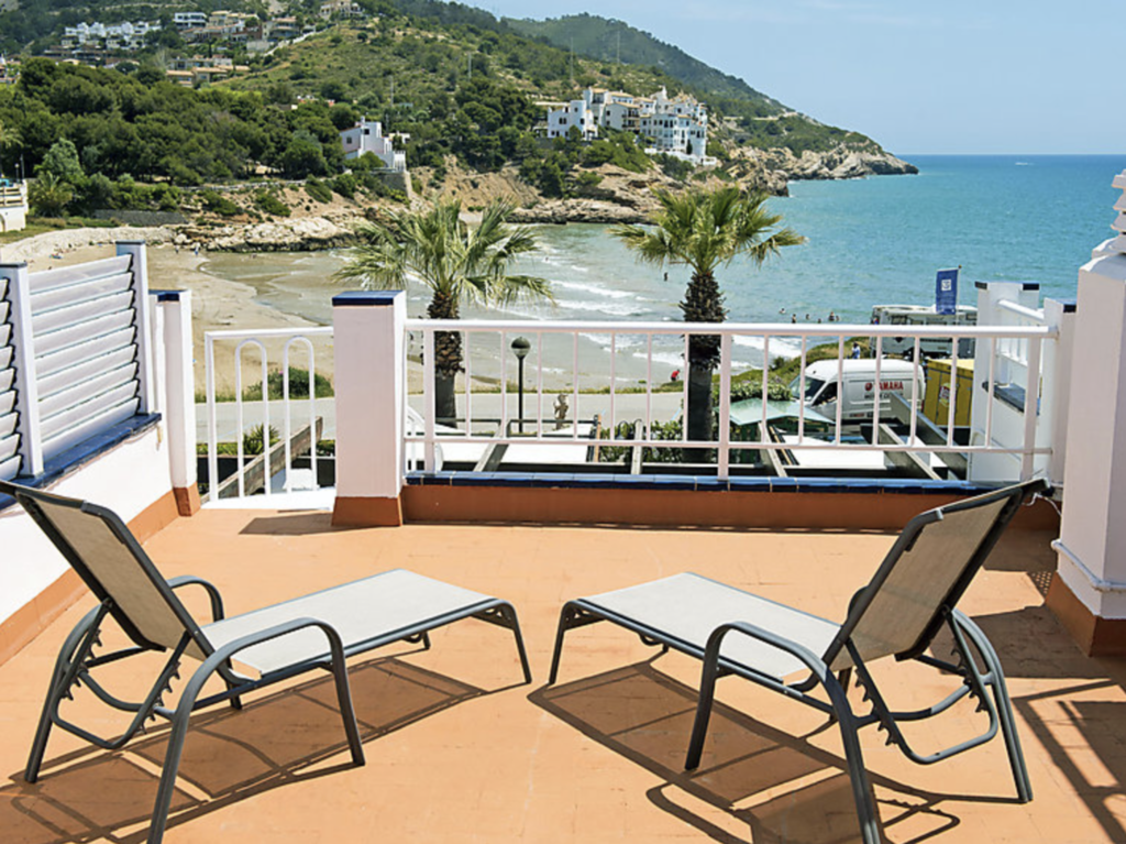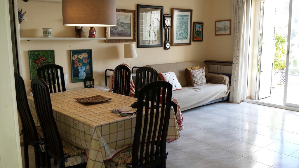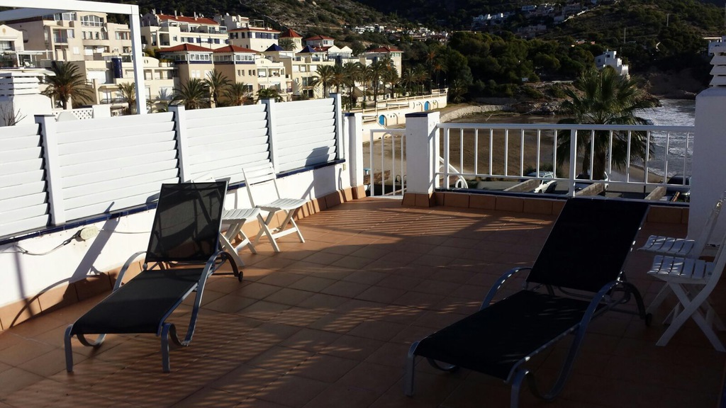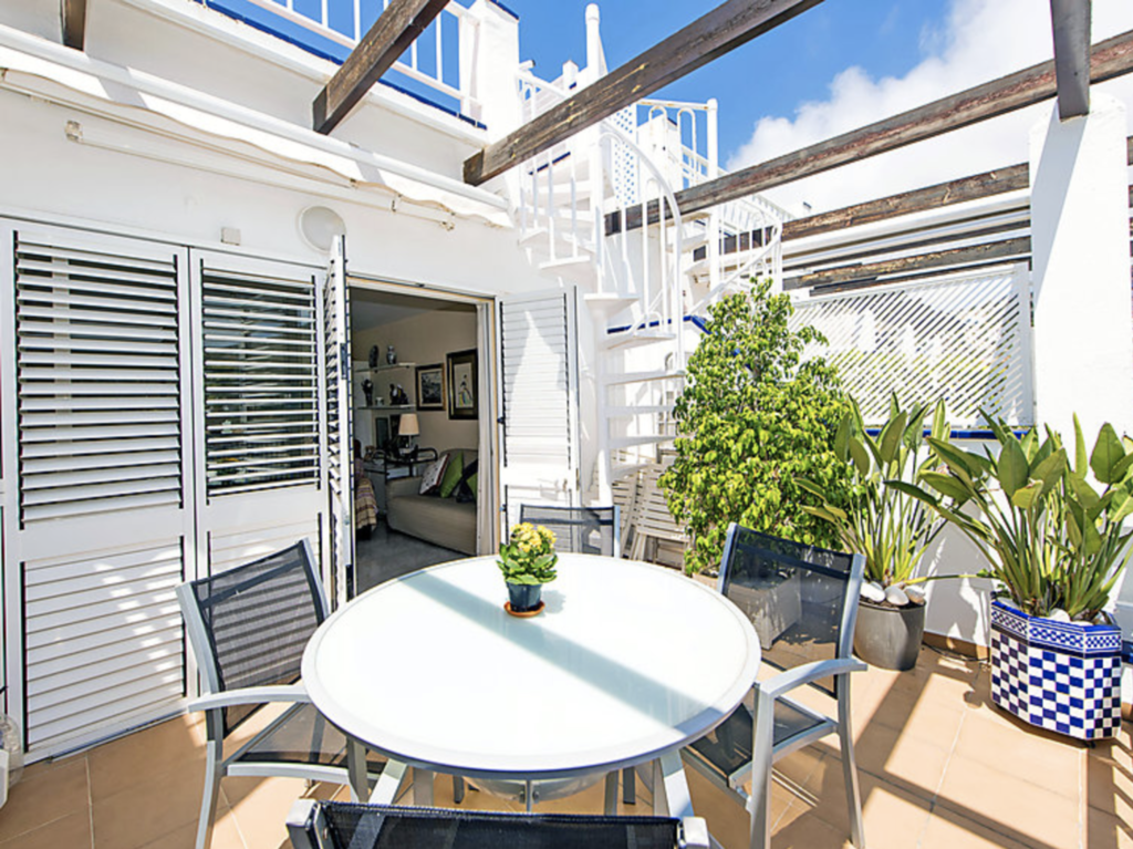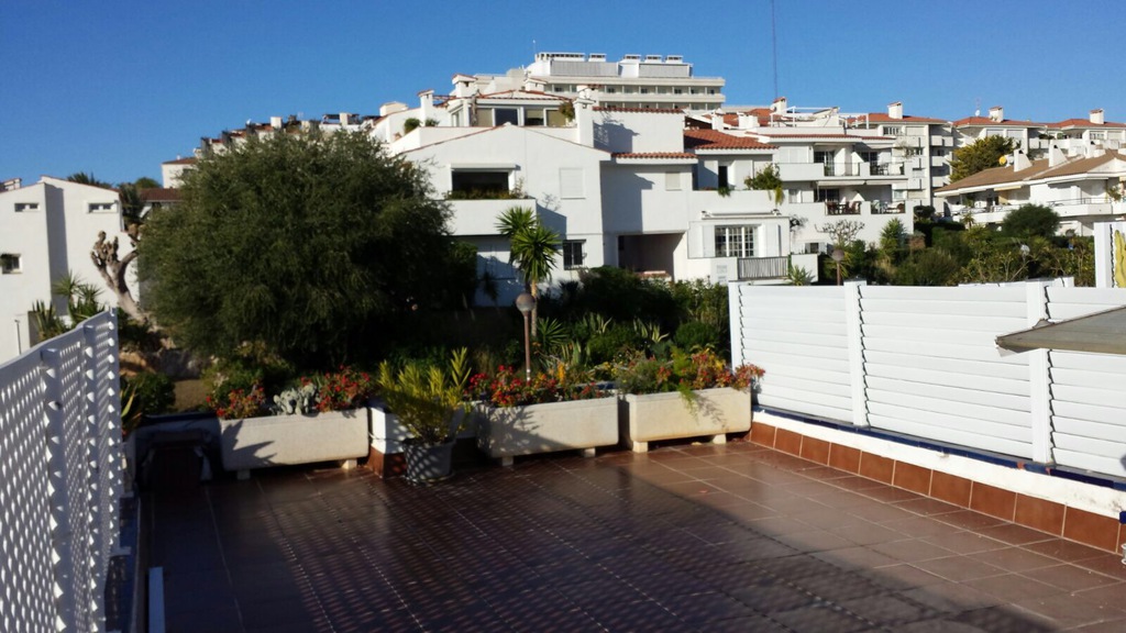 Lovely townhouse in the Sitges area of Aiguadolç overlooking the marina beach and just steps awy from the Aiguadolç port. This property offers 4 bedrooms and 3 bathroom (one WC only) devided over 2 floors. The property offers stunning sea views from the ground floor tarrace, walking up the spiral stairs we find a large 60m2 second roof terrace again with spectacular sea and beach views. The comunity consists of 8 houses and has a nice large comunal garden area. The property offers AC and separate central heating system.