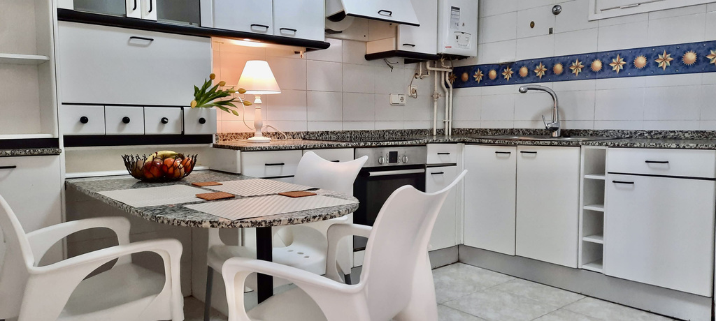La propiedad consta de una habitación doble con salida directa a la terraza, dos habitaciones individuales, un baño completo, amplio salón/comedor, muy luminoso y gran cocina completamente equipada.
