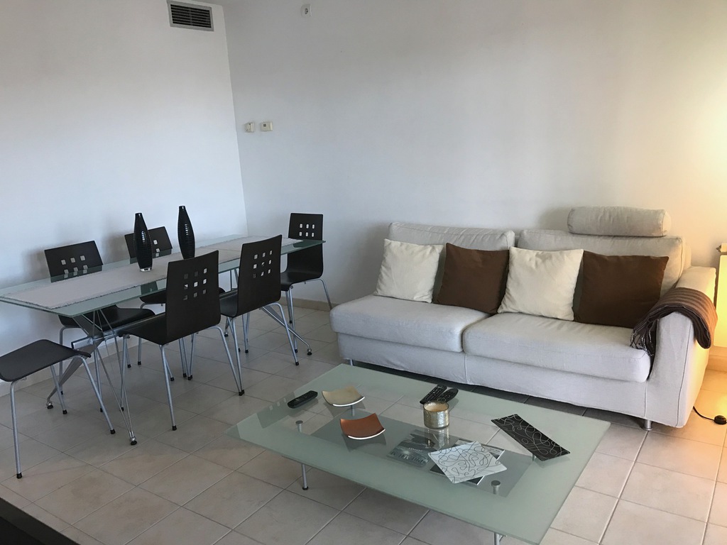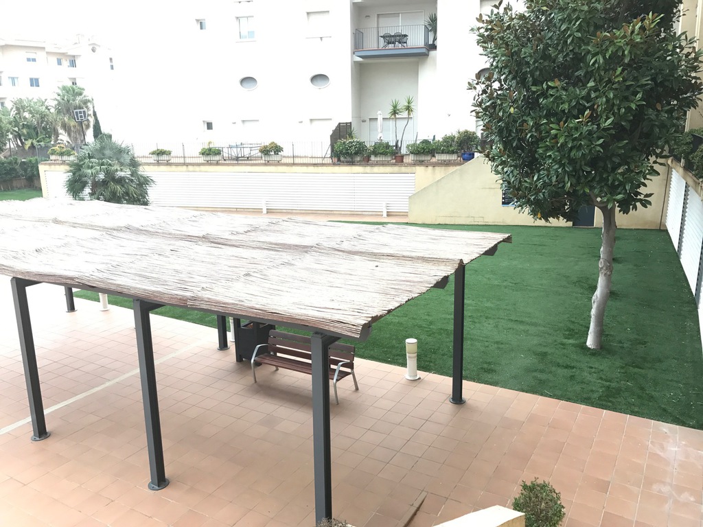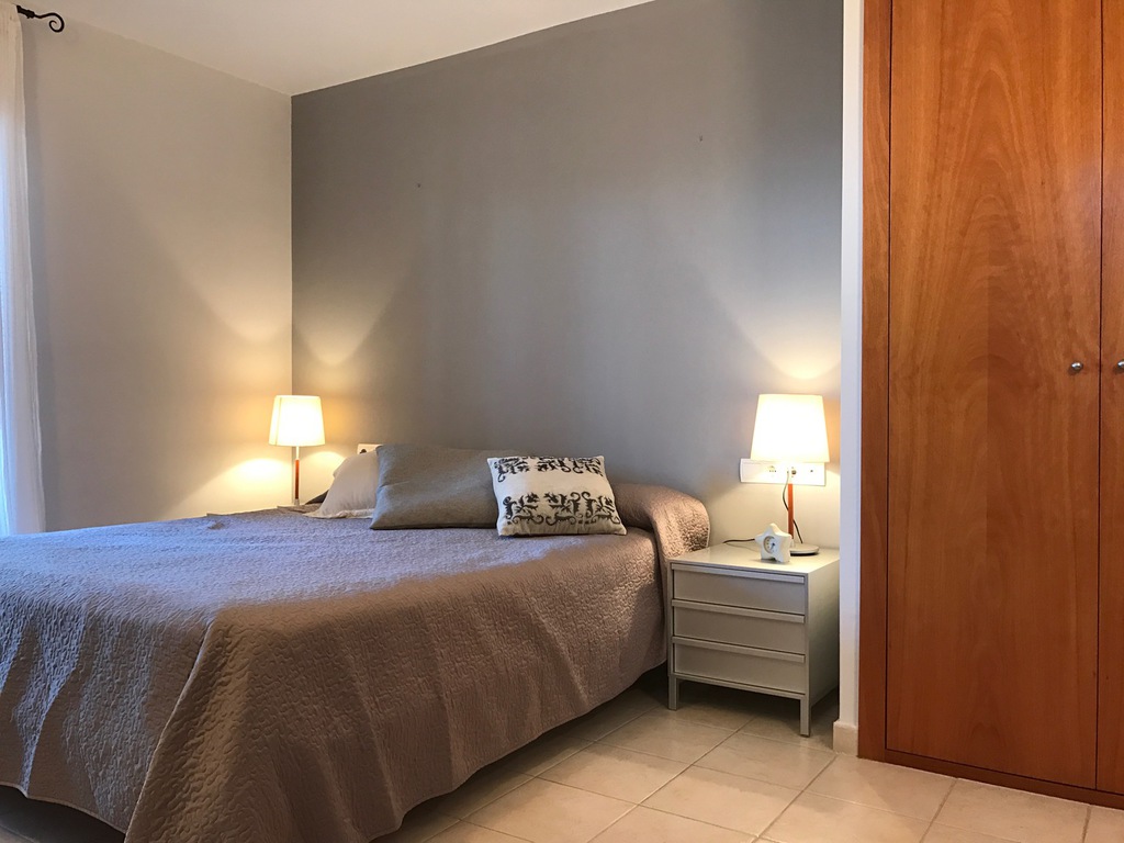 Sea. Located in a very nice area called Can Pei in a tranquil complex with communal garden and pool.