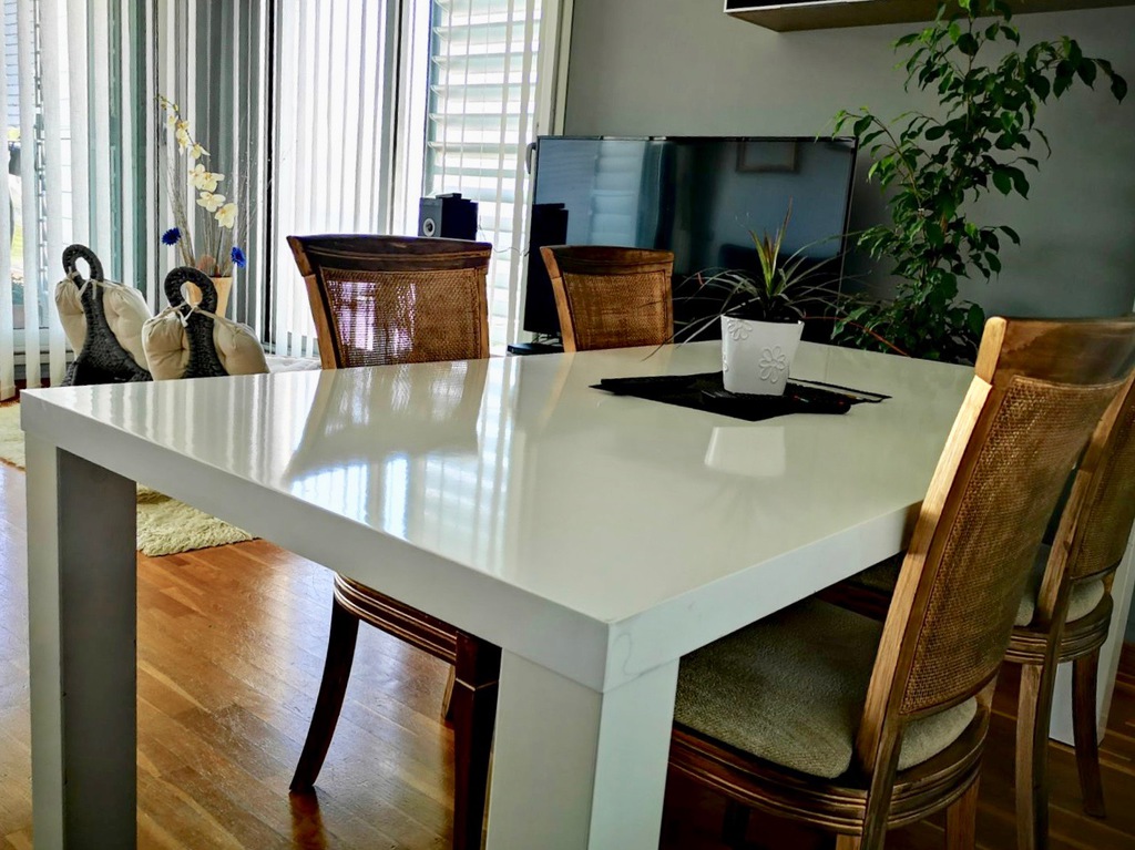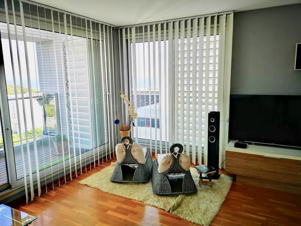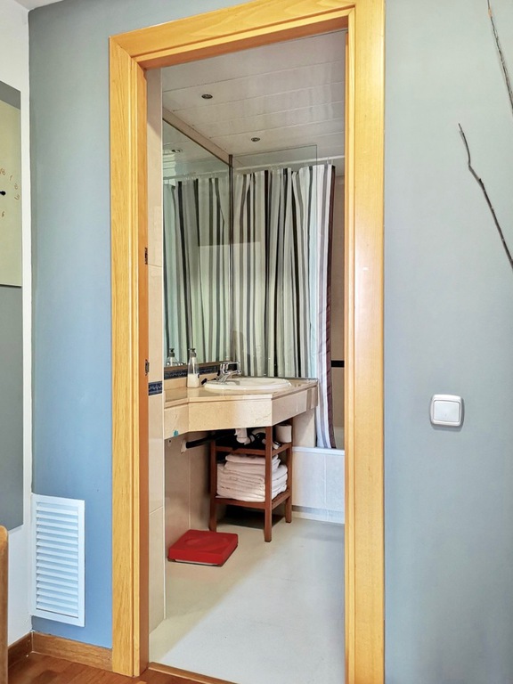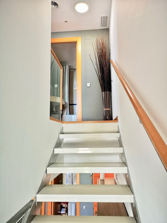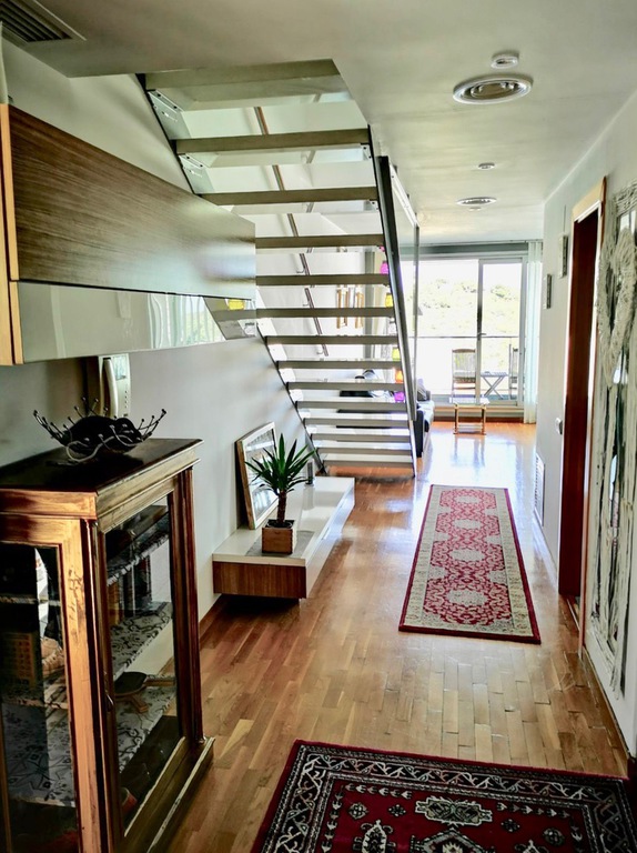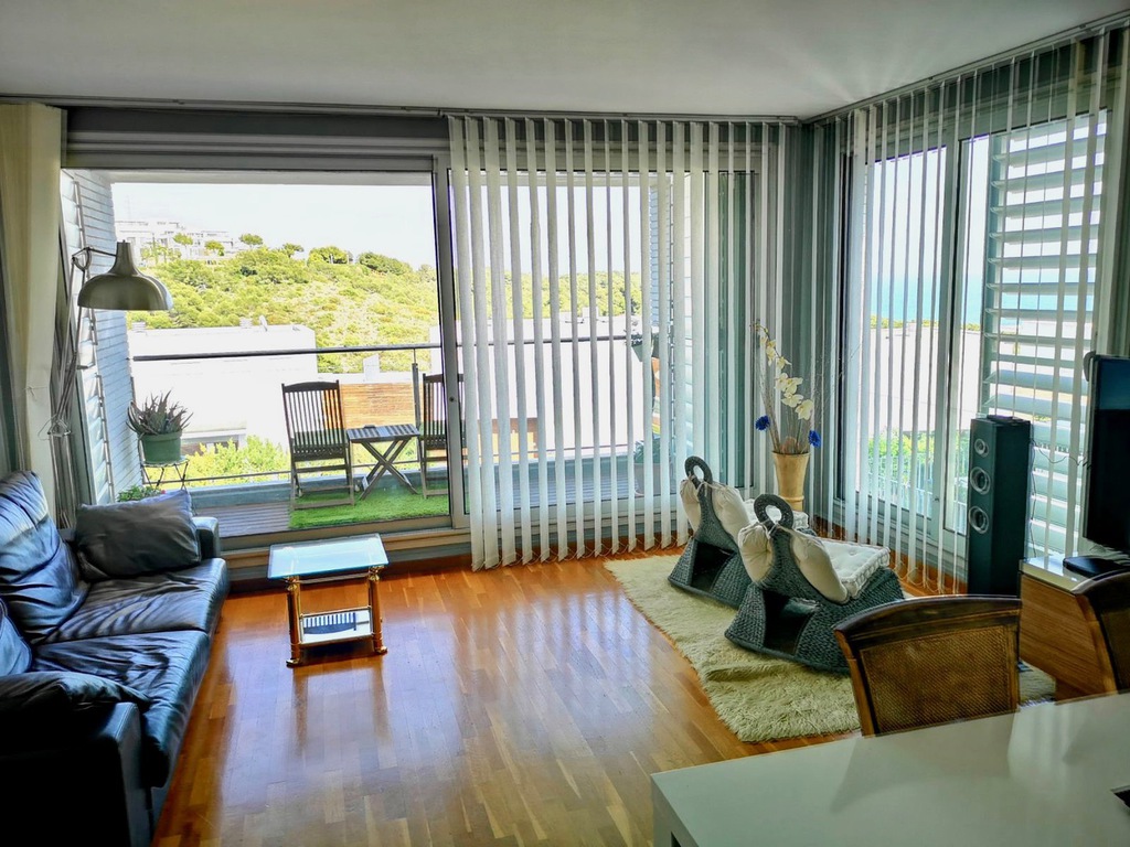 - Dúplex muy luminoso, con estilo, situado en la exclusiva zona de Casas del Mar en Sant Pere de Ribes. En la planta superior, a la entrada, hay un baño, una sala de estar grande y elegante con acceso directo a una terraza soleada de muy buen tamaño, una habitación doble con una mesa de oficina y la cocina con acceso a la terraza principal soleada con todos los servicios como barbacoa , ducha, tumbonas ...