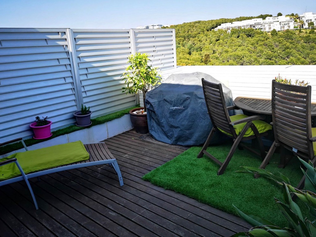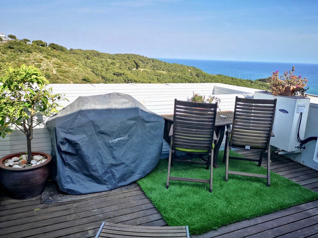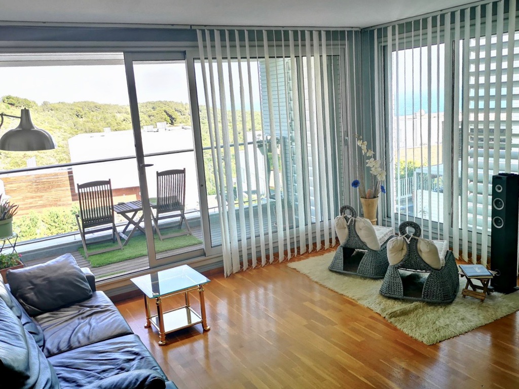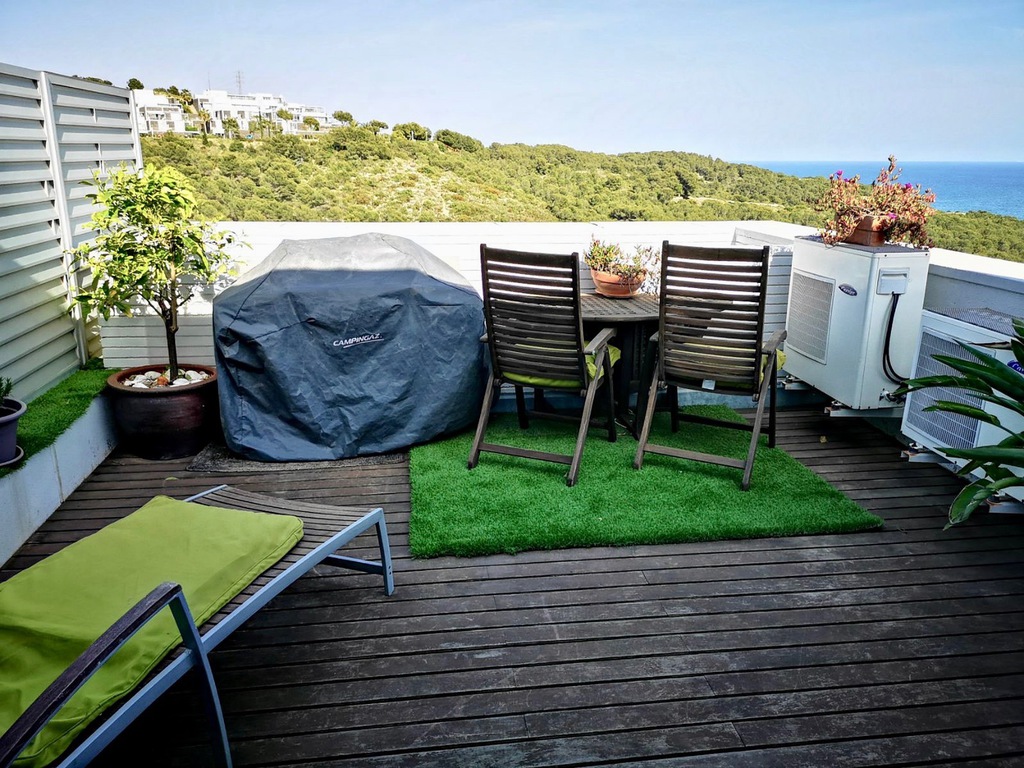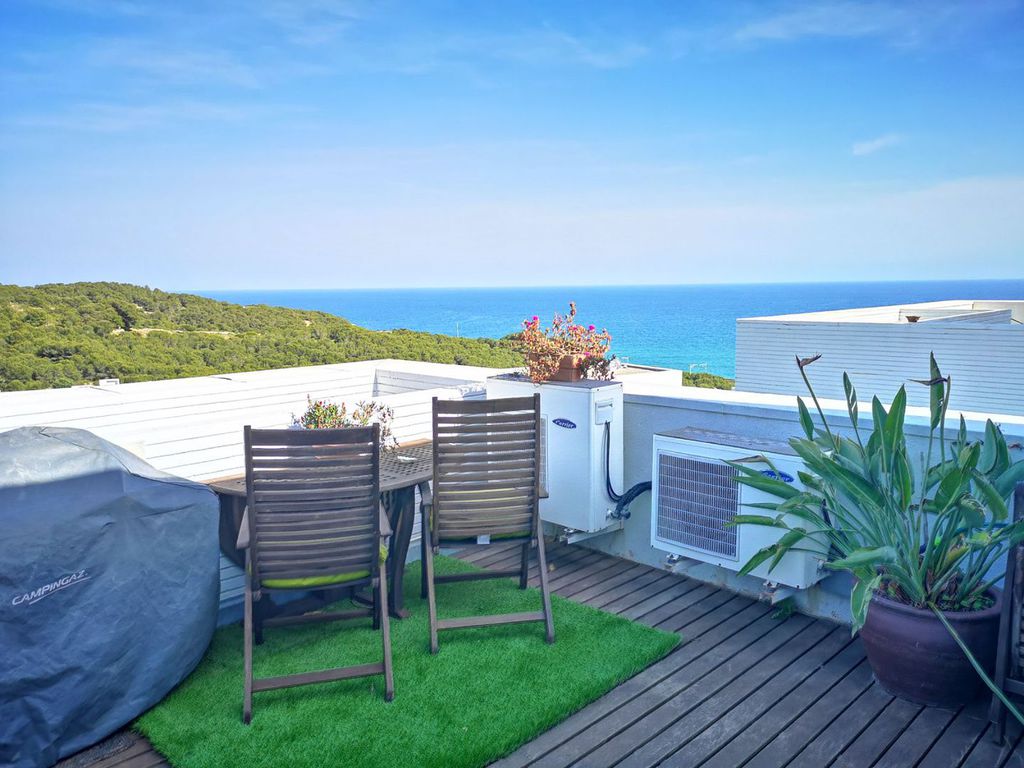 - Very bright and stylish duplex situated in the upmarket area of Casas del Mar in Sant Pere de Ribes. On the top floor, upon entrance, there is a wc, a large and stylish living room with a very good size sunny terrace, a double bedroom with an office table and the kitchen with access to the main sunny terrace with all the utilities as BBQ, shower, sun beds..