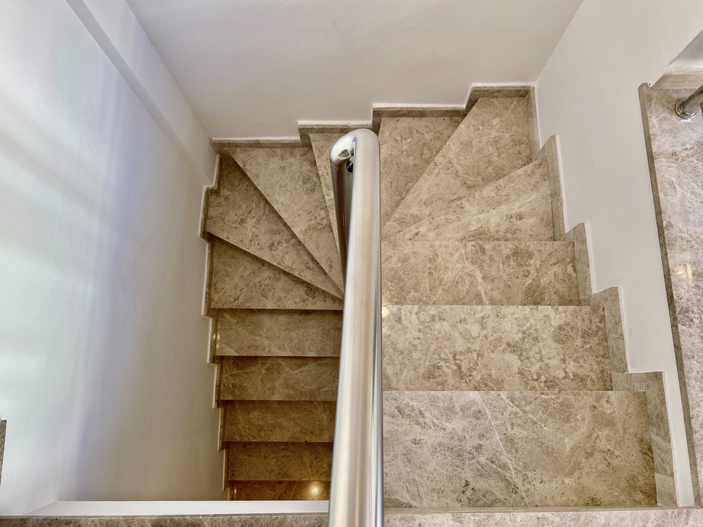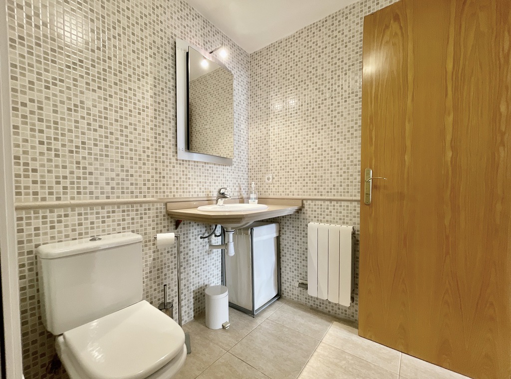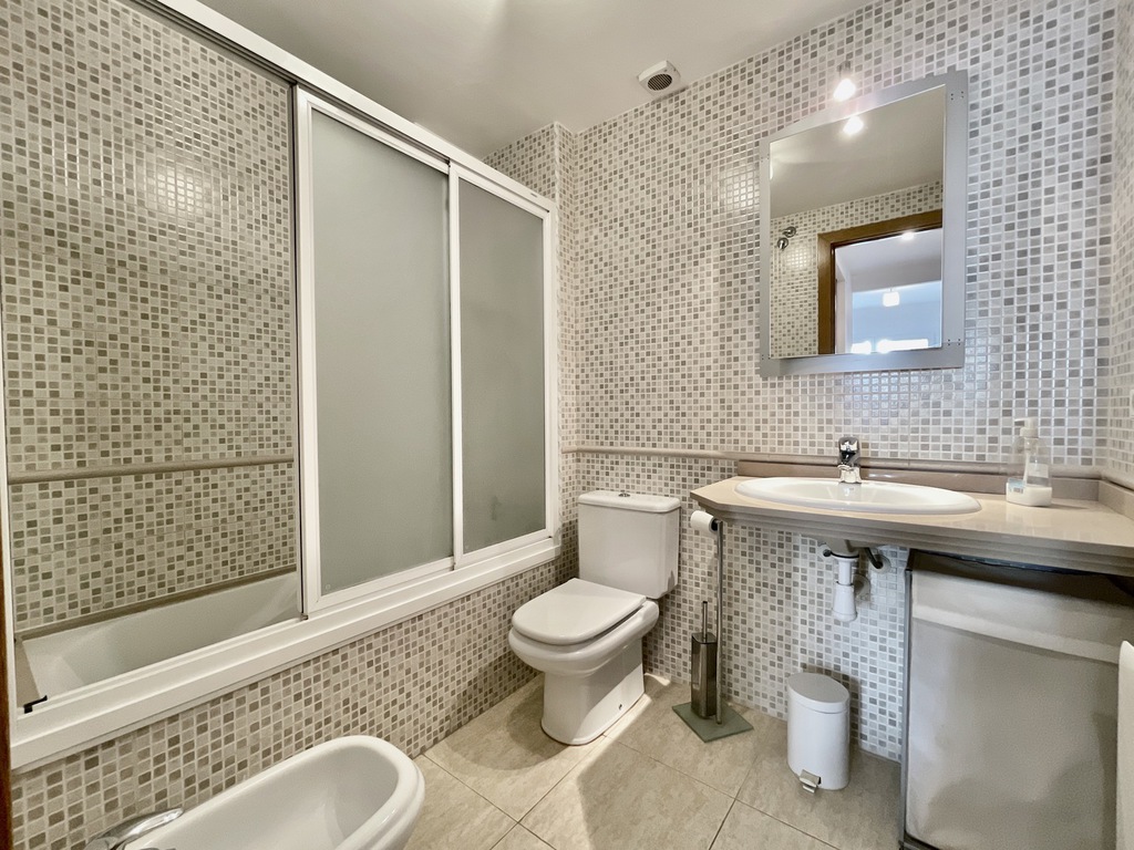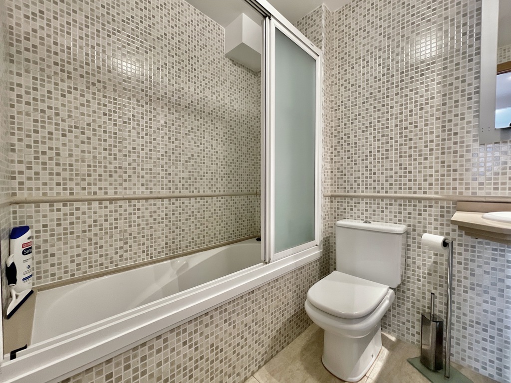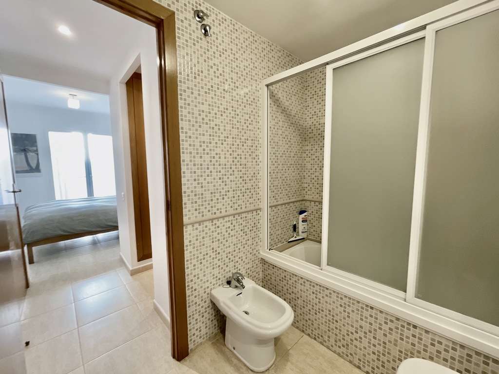The property is divided over two floors, on entry we find a comfortable salon, kitchen and large windows giving access to the main 23m2 terrace, going down the stairs we enter the bed and bathroom area, two double bedrooms (one is ensuite), a single room and second bathroom with shower.