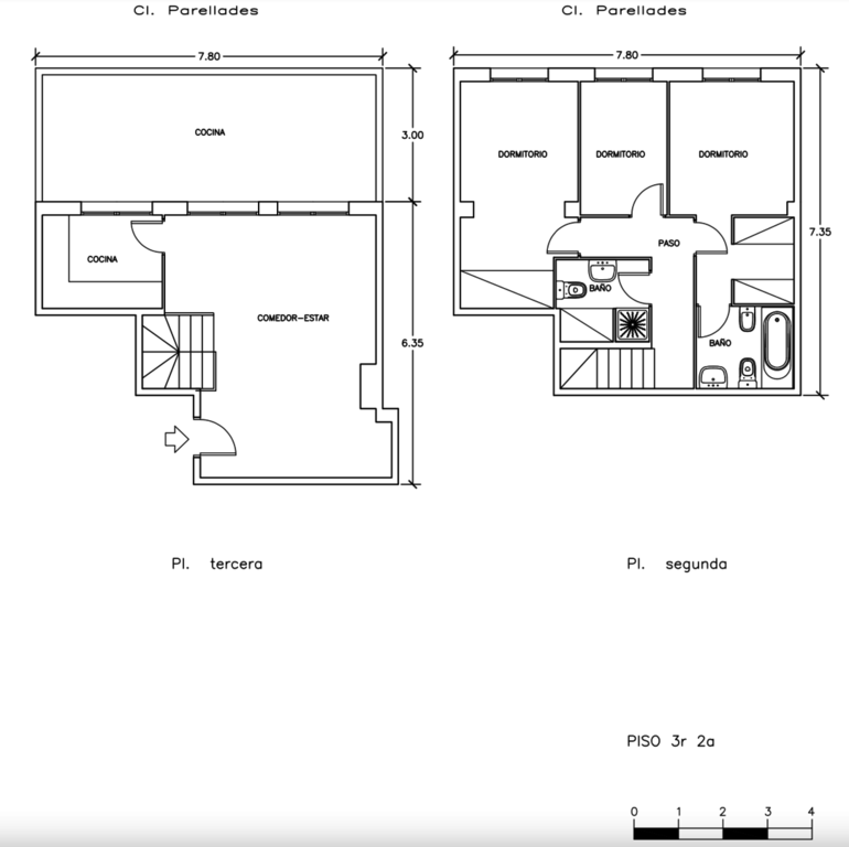 La propiedad se distribuye en dos plantas, al entrar encontramos un cómodo salón, cocina y grandes ventanales que dan acceso a la terraza principal de 23m2, bajando las escaleras accedemos a la zona de dormitorio y baño, dos dormitorios dobles (uno en suite), un habitación individual y segundo baño con plato de ducha.