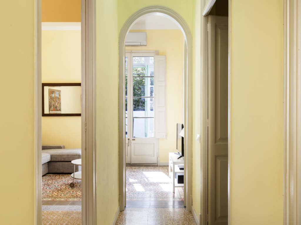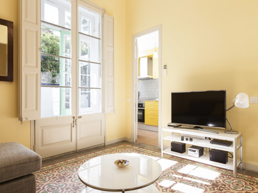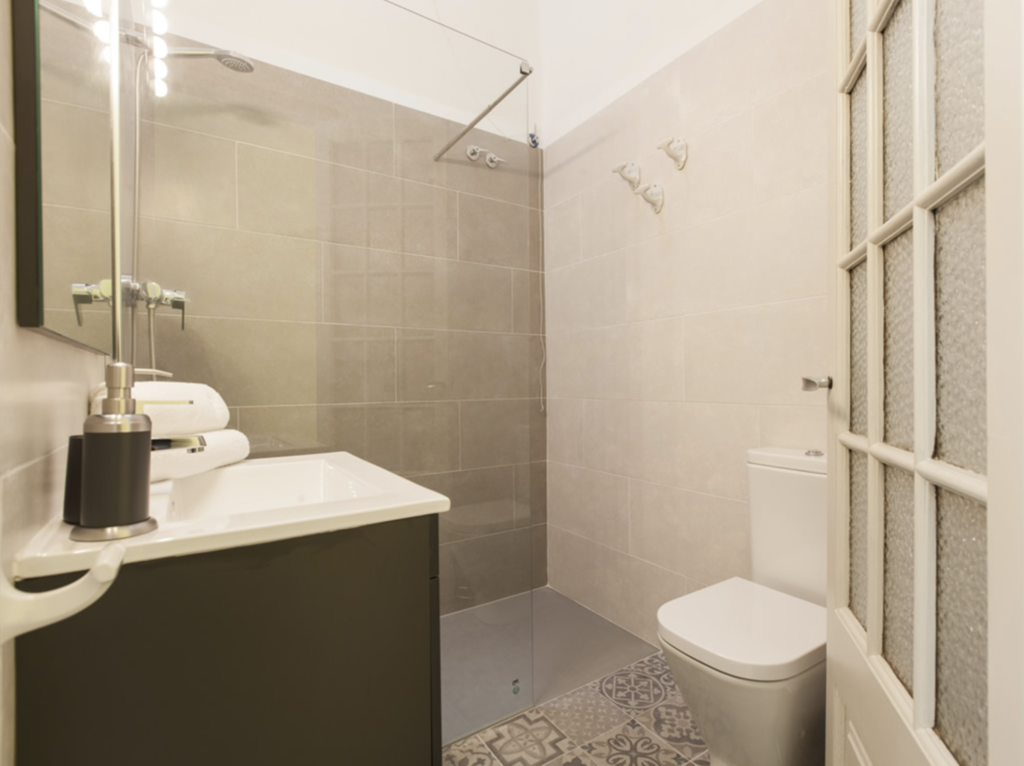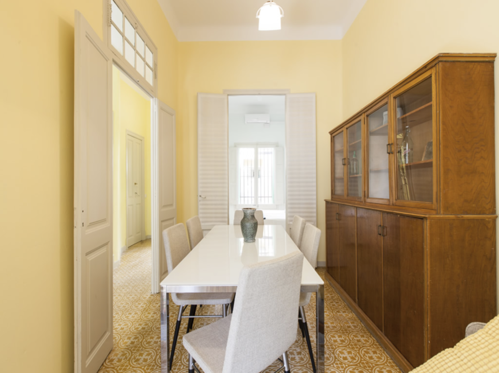 Authentic Sitges town house, located in Sitges centre. the property has been fully reformed but still holds much of its charm High ceilings and original Spanish floor tile, it is a very special property. On entering the house there is a long hall, off this there are the 2 bedrooms Bedroom one has 2 single beds and bedroom 2 has a double. Both bedrooms have air conditioning The bathroom fully reformed has a large walk in shower.There is a separate dining area which opens onto the living area with comfy seating and a flat screen TV, access to the large roof terrace is via a small conservatory with original double height French doors, here there is also a separate toilet. The living area has air conditioning. Double doors open into the modern kitchen equipped for your holiday needs. At the back of the property is the staircase which takes you up to a very large roof terrace , here you will find a separate kitchen outdoor dining table and chairs,also sunbeds.Parties on the roof terrace a strictly prohibited as there are private residences close by.