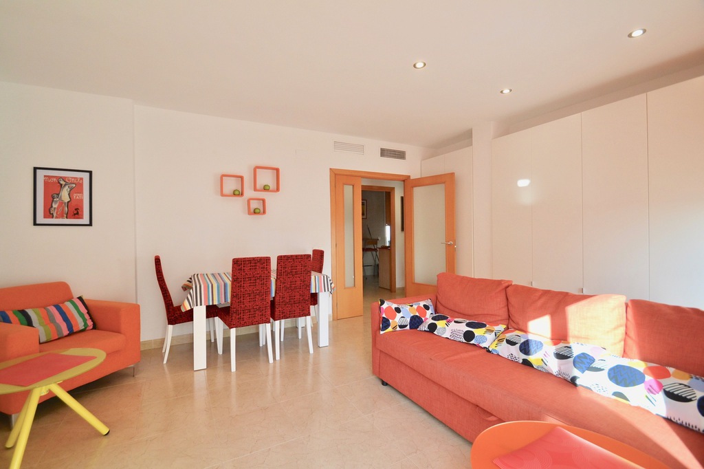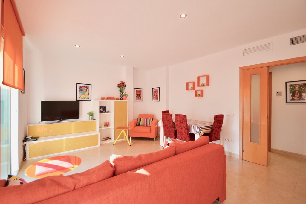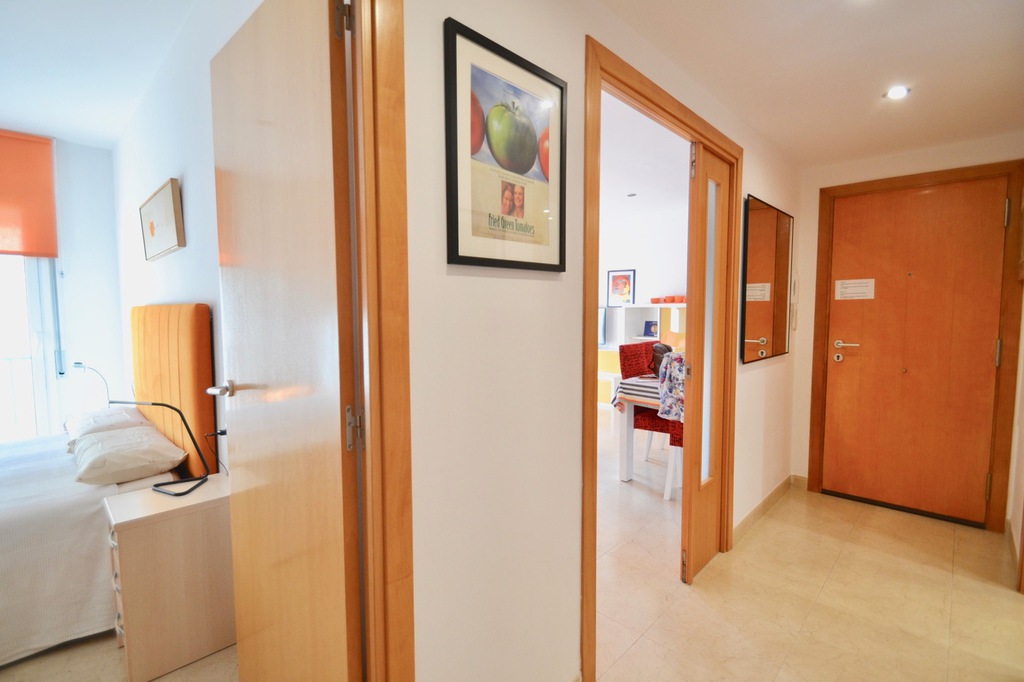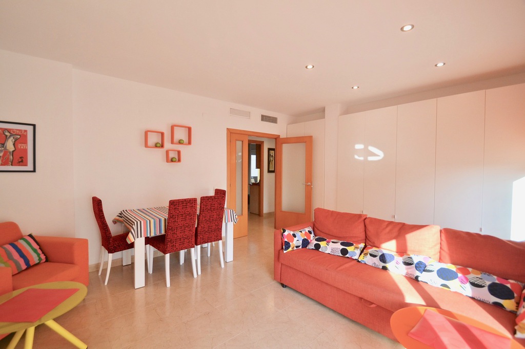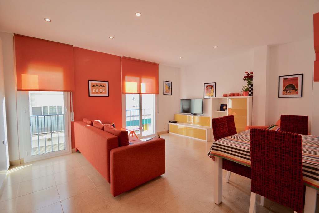 Bright and modern apartment for sale in Sitges centre, the property offers 2 bedrooms, large living area, separate modern kitchen, bathroom and interior terrace overlooking a patio.