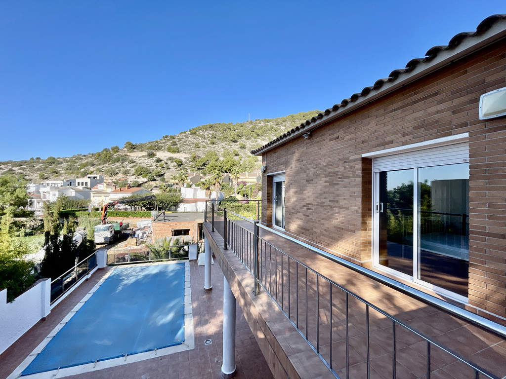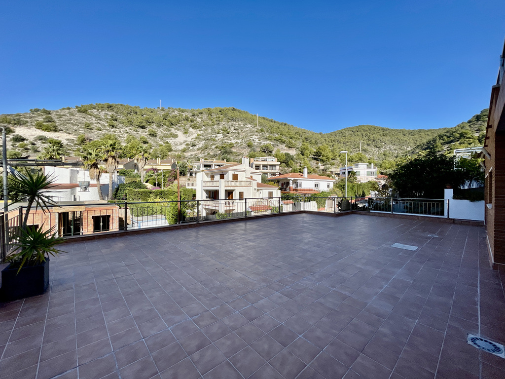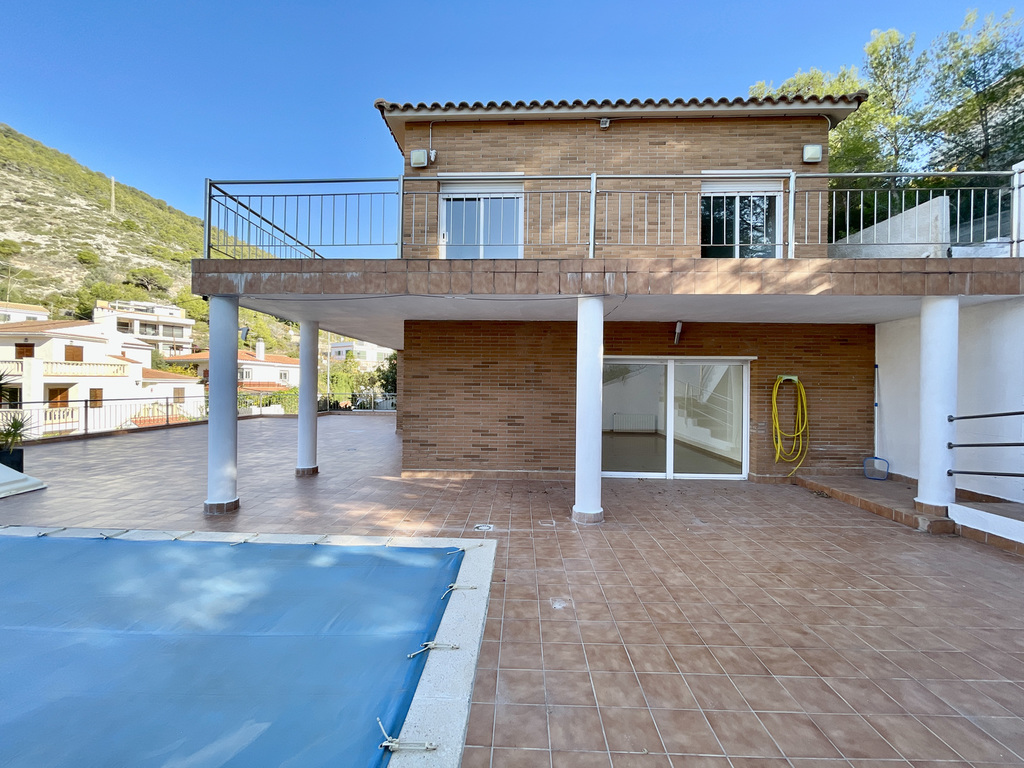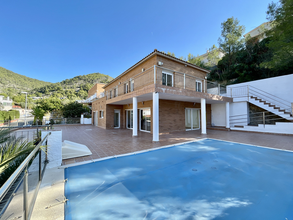 En la urbanización de Mont Gavina, cerca de la playa y del puerto deportivo de Aiguadolc en Sitges, encontramos esta bonita casa individual. Construido en el 2003, la casa ofrece bonitas vistas al mar y a la montaña, haciendo frontera con el parque natural de Garraf.