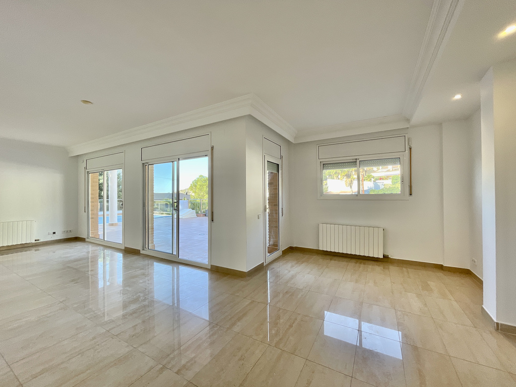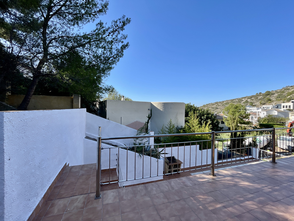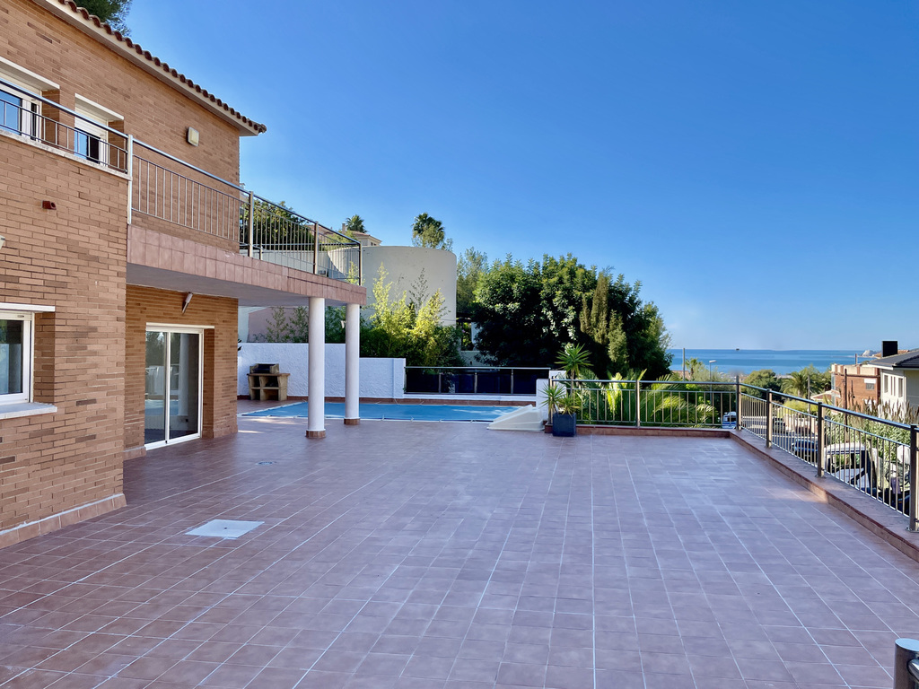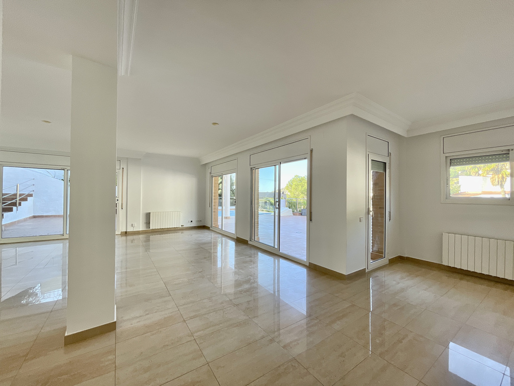 En la urbanización de Mont Gavina, cerca de la playa y del puerto deportivo de Aiguadolc en Sitges, encontramos esta bonita casa individual. Construido en el 2003, la casa ofrece bonitas vistas al mar y a la montaña, haciendo frontera con el parque natural de Garraf.