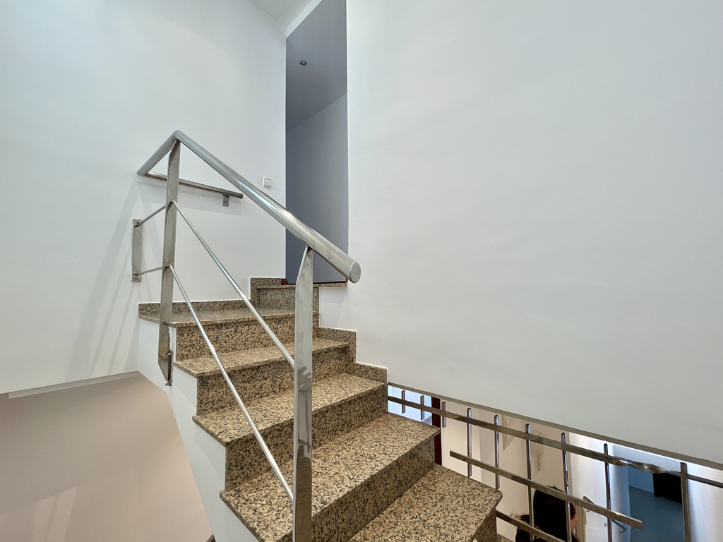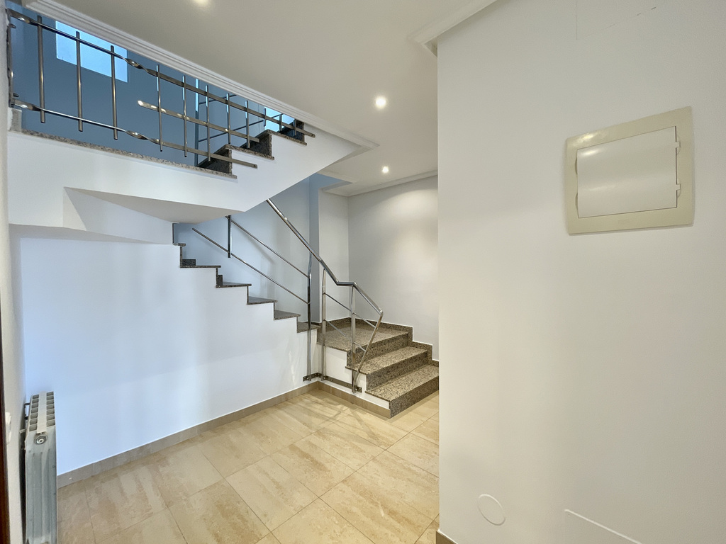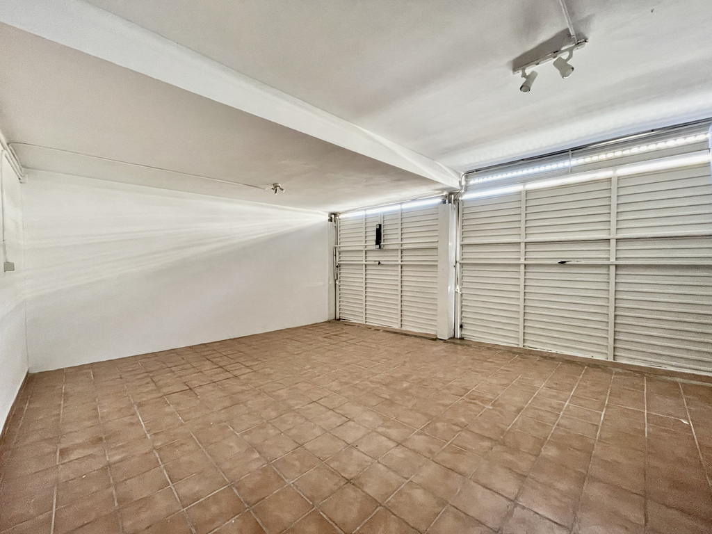 A pie de calle, nos encontramos con el recibidor, una habitación/despacho, y un amplio garaje para 3 coches y trastero.