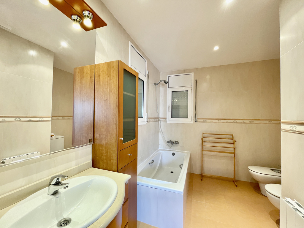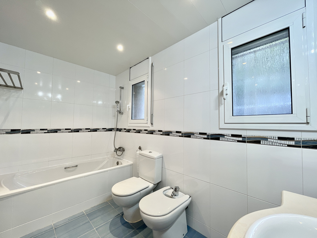 baño con bañera. Todas las habitaciones tienen salida a otra terraza que rodea la casa y con fantásticas vistas al mar y a la montaña.