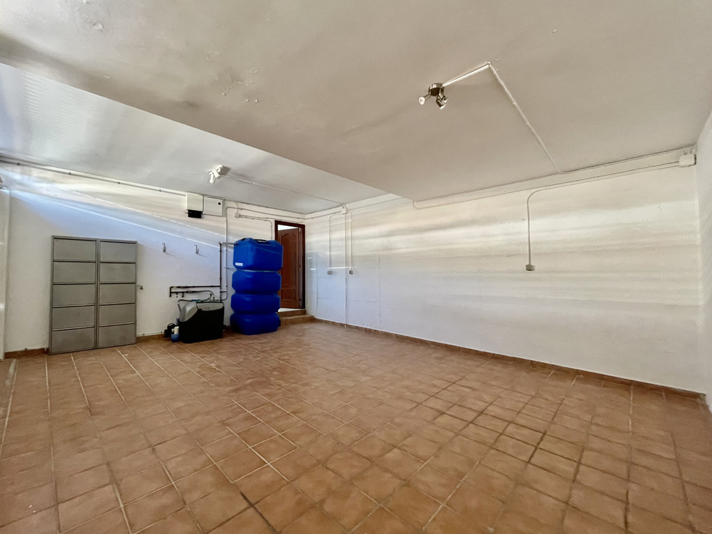 La planta principal ofrece un amplio salón y comedor, una cocina equipada y un cuarto de baño con ducha. Desde el salón y la cocina, salimos a la terraza de más de 200 m2, llano, con un porche y una