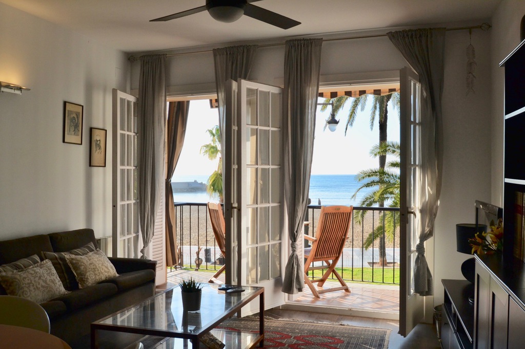 - Stunning beachfront apartment, Paseo de la Ribera with tourist licence (HUTB) interesting for investors offering strong ROI, offering great views of the paseo and beach, just a short walk from the famous landmark of Sitges, the church of St. Bartomeu. The apartment has 3 bedrooms and 2 bathrooms both with walk in showers. At the front of the apartment is the living room with lounge area and dining area combined, from this area are 2 French doors opening onto the front balcony with undisturbed views of the beach and sea. A separate kitchen with essentials. To the back of the apartment are the 3 bedrooms: The main bedroom has a king size bed, from this bedroom is access to the rear balcony.The second smaller bedroom has a single bed with a pullout that can be made into a twin.The third bedroom has a single bed, which can be made into a twin from this bedroom there is also access to the rear balcony.The two bathrooms are located next to the bedrooms.The apartment is on the first floor and there is a lift.The apartment does have air conditioning but the sea breeze does keep it cool.