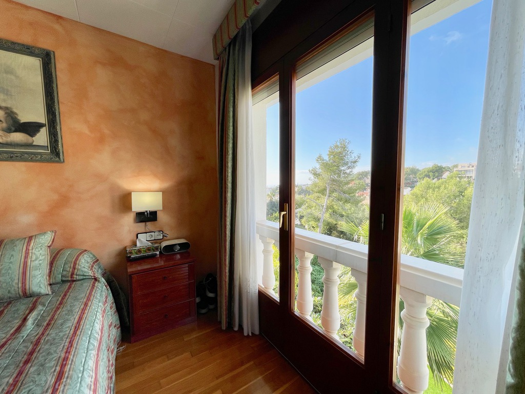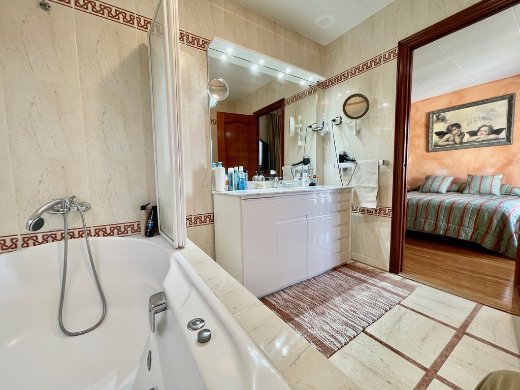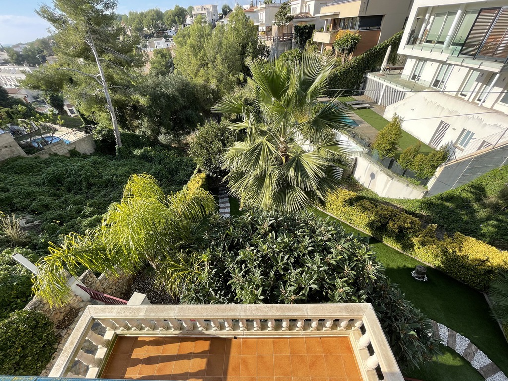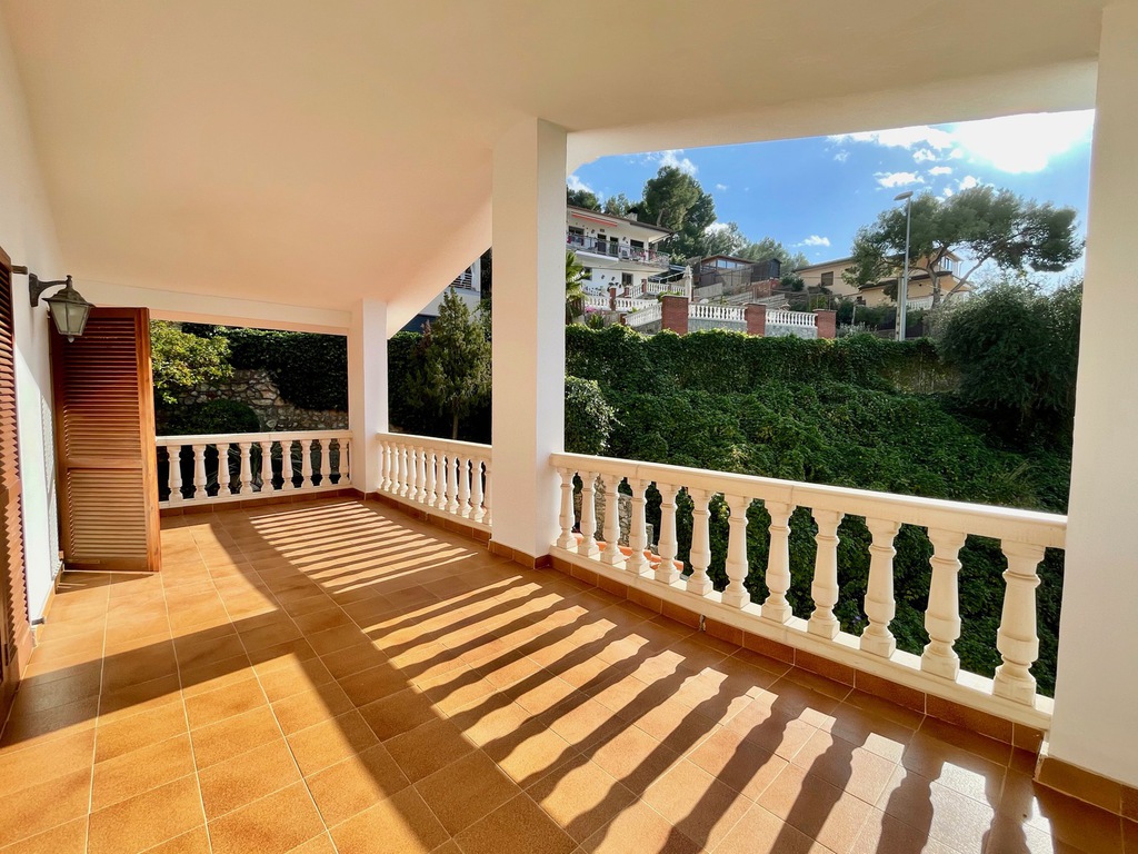 On entry we arrive in the living room equipped with a nice fireplace and views over the garden Sitges and the sea, on the same floor the kitchen is located and going down a couple of steps, 3 bedrooms and a bathroom. The top floor is reserved for a large en-suite bedroom with wooden walk in wardrobes, large full bathroom and a 40m2 terrace again with lovely views.