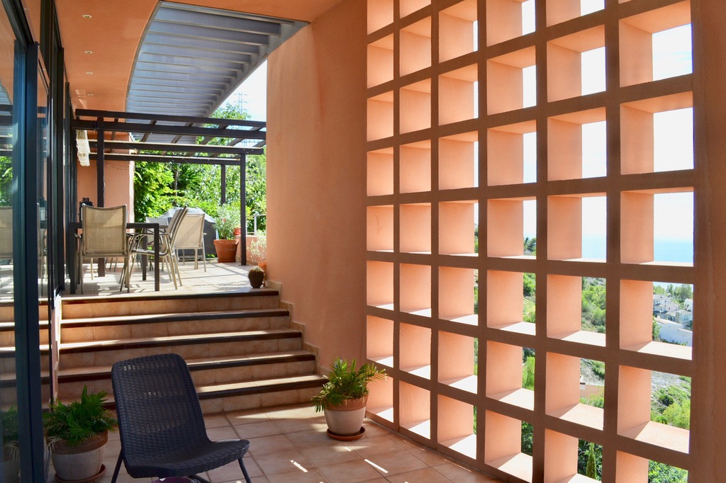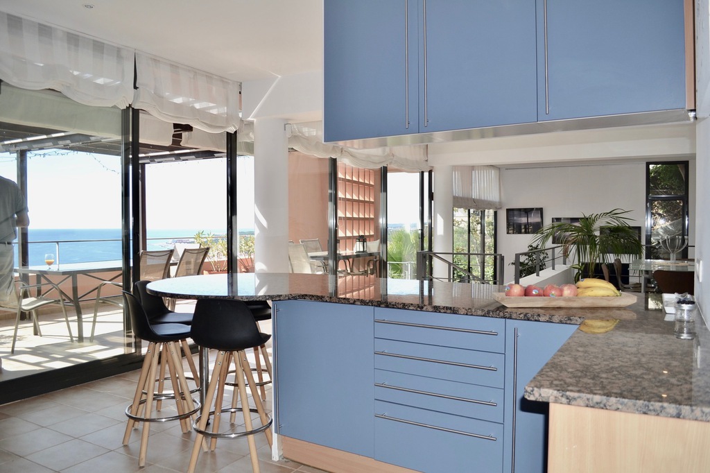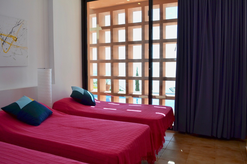 On this level there is another living area / chill out, with seating. 2 bedrooms, 2 batthrooms all rooms offer wide patio doors open onto another sea view terrace.